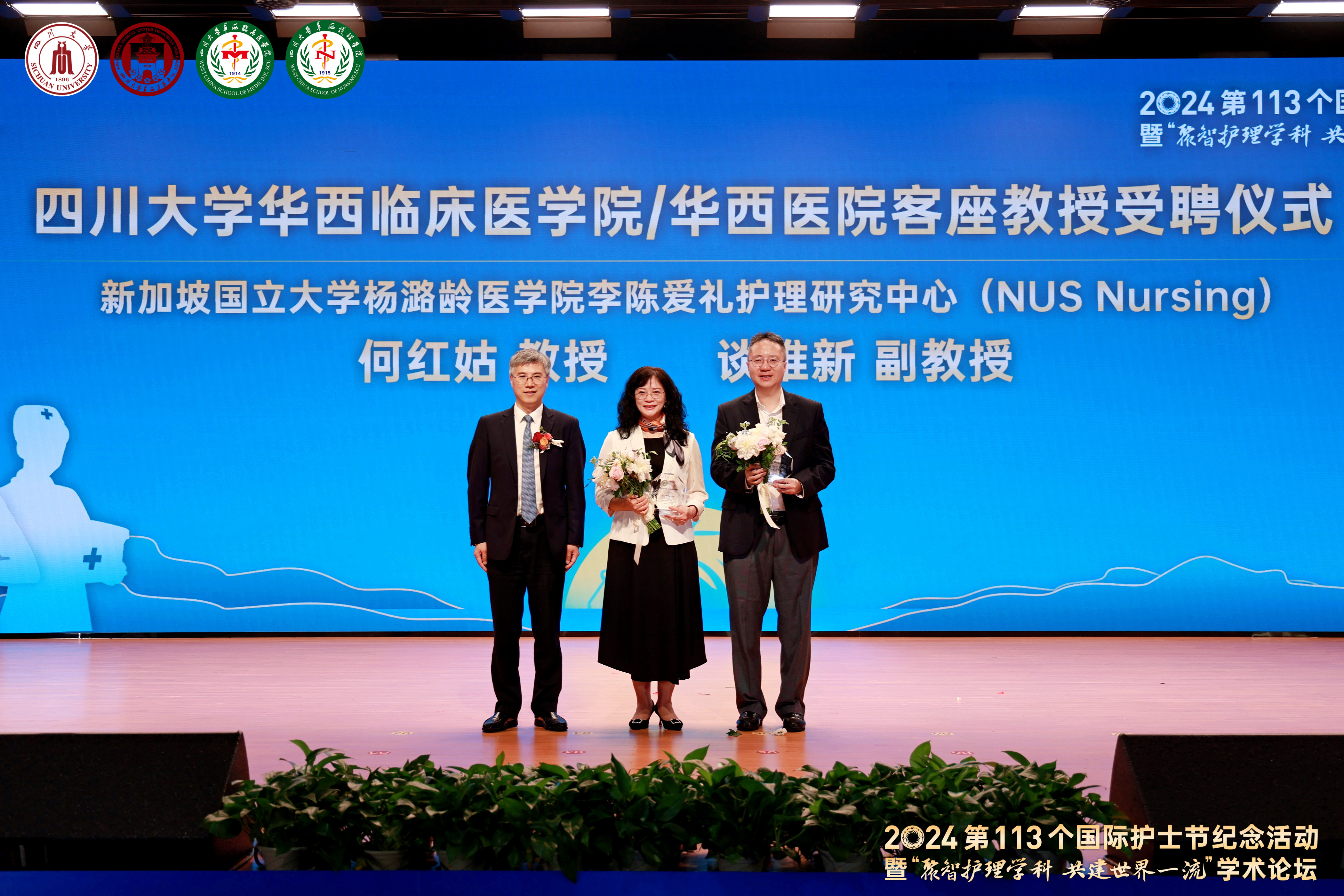 Dean Luo Fengming of West China School of Medicine/West China Hospital, Sichuan University presented appointments of visiting professor to Dr. He Honggu and Dr. Tam Wai San Wilson from the Alice Lee Centre for Nursing Studies, Yong Loo Lin School of Medicine, National University of Singapore.