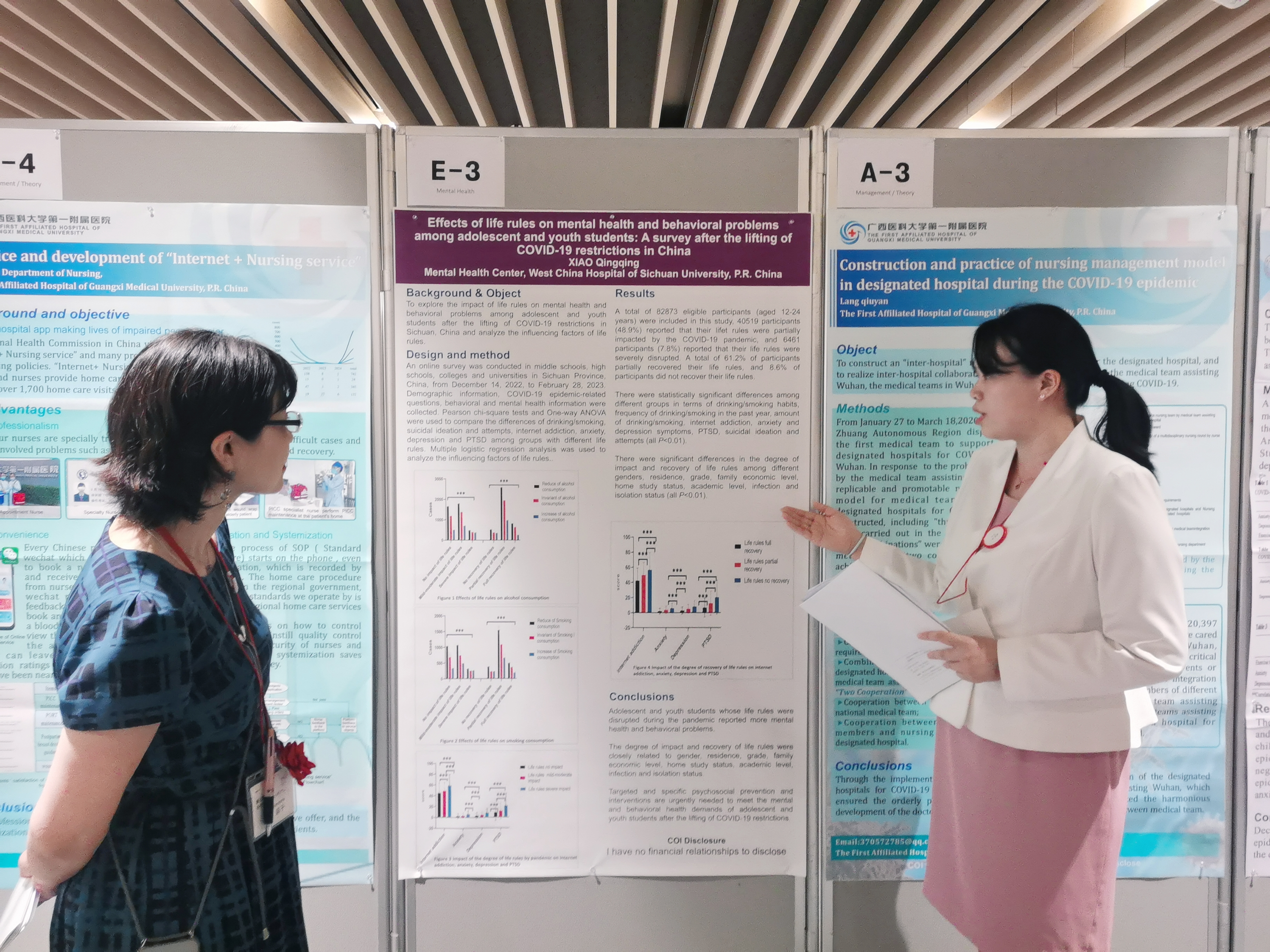 Faculty members Lin Jie, Xing Lu, Xiao Qingqing, postgraduates Wang Xiaoyu, He Dongning, Hu Yuexia, Liu Qian, Guo ling, Guo Xiang, Li Shutong, Zhangyun delivered oral speeches in the poster display hall.