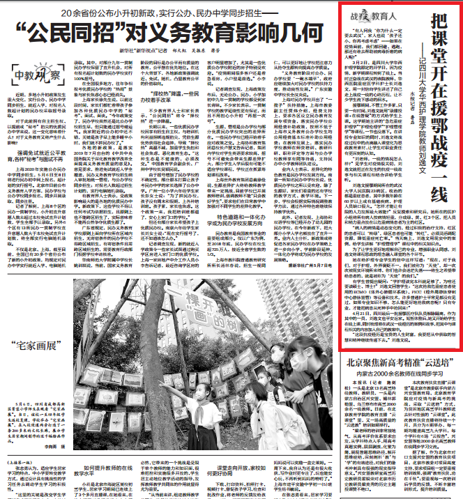 编者按:近日,中国教育报开设“战疫教育人”栏目,聚焦教育战线一线医护、教学科研人员投身疫情防控工作的良好风采和精神风貌。5月8日,中国教育报第三版以《把课堂开在援鄂战疫一线——记bat365中文官方网站教师刘逸文》为题...