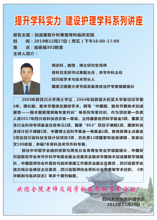 2019年12月27日讲座预告——“加速康复外科重塑骨科临床实践...
