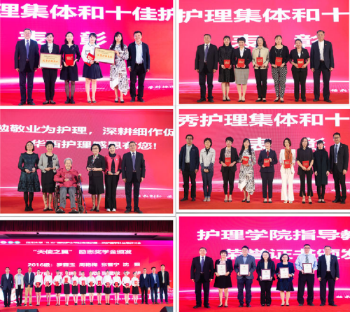 活动举行了护士节表彰。华西医院皮肤性病科护理团队、华西第二医院生殖内分泌科护理团队获得“2018年度bat365中文官方网站优秀护理集体”称号。华西医院邓学学、包芸、刘俐、李红、杨利,华西第二医院陈秀英、杨建英,口腔医院李晓英,华西第四医院曾萍,校医院王梅梅获得“2018年度bat365中文官方网站十佳护士”称号。会上还为获得“天使之翼励志奖学金”的华西护理本科生、获得“护理学院指导教授荣誉证书”的交叉学科导师代表、历任护理学院院长/护理系主任代表颁发证书及奖杯。