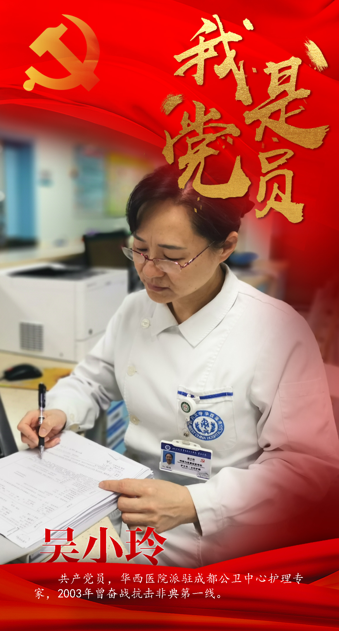 按照成都市委市政府部署,华西医院派出专家组进驻成都市公共卫生临床医疗中心,该专家组唯一一位护理专家是华西医院呼吸与呼吸危重症医学护理的带头人吴小玲教授,中国共产党党员。17年前,她就曾奋战抗击非典一线,17年后,她再披战袍冲向一线。