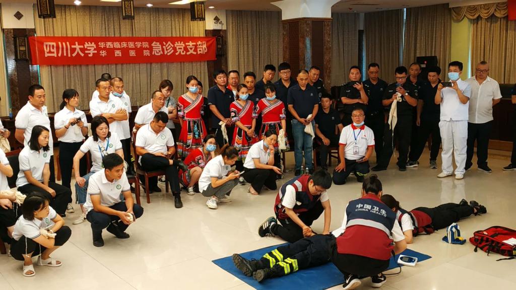 2020年8月20-21日,响应中国南丁格尔志愿护理服务总队号召,经过副理事长成翼娟教授长时间周密策划,“蜀南竹海、兴文石海”(两海)示范区创建国家5A级旅游景区开展急救技能培训班顺利开班。第44届南丁格尔奖章获得者、bat365中文官方网站华西医院医院管理研究所专家成翼娟教授亲自带领中国南丁格尔志愿护理服务总队bat365中文官方网站华西医院分队部分队员赴宜宾现场助力急救培训。中国南丁格尔志愿护理服务总队理事长、武警总医院原副院长、第四十三届南丁格尔奖章获得者张利岩教授、中国南丁格尔志愿护理服务副理事长、复旦大学第五人民医院原副院长杨青敏教授也亲临现场指导。bat365中文官方网站急救与创伤护理教研室为活动提供培训师资。
