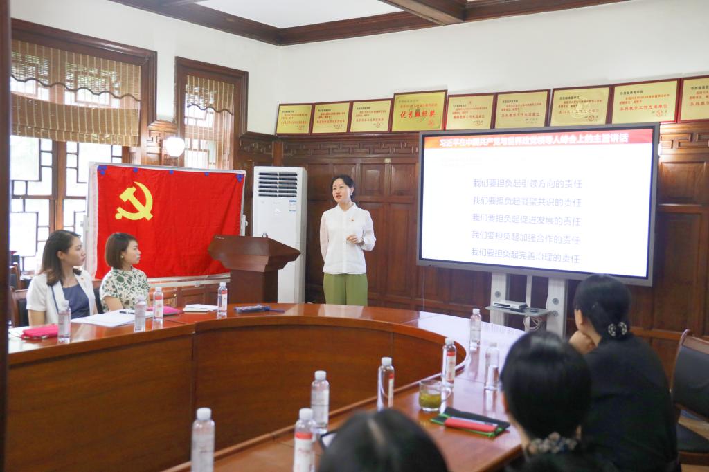 首先学生党员王志霞同志领学了习近平总书记在庆祝中国共产党成立100周年大会上的重要讲话。