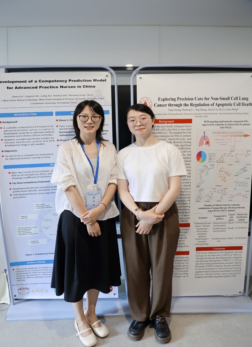 研究生刘雨薇博士和黄炫硕士分别做了题为《Development of a Competency Prediction Model for Advanced Practice Nurses in China》和 《Exploring Precision Care for Non-Small Cell Lung Cancer through the Regulation of Apoptotic Cell Death》的壁报展示。
