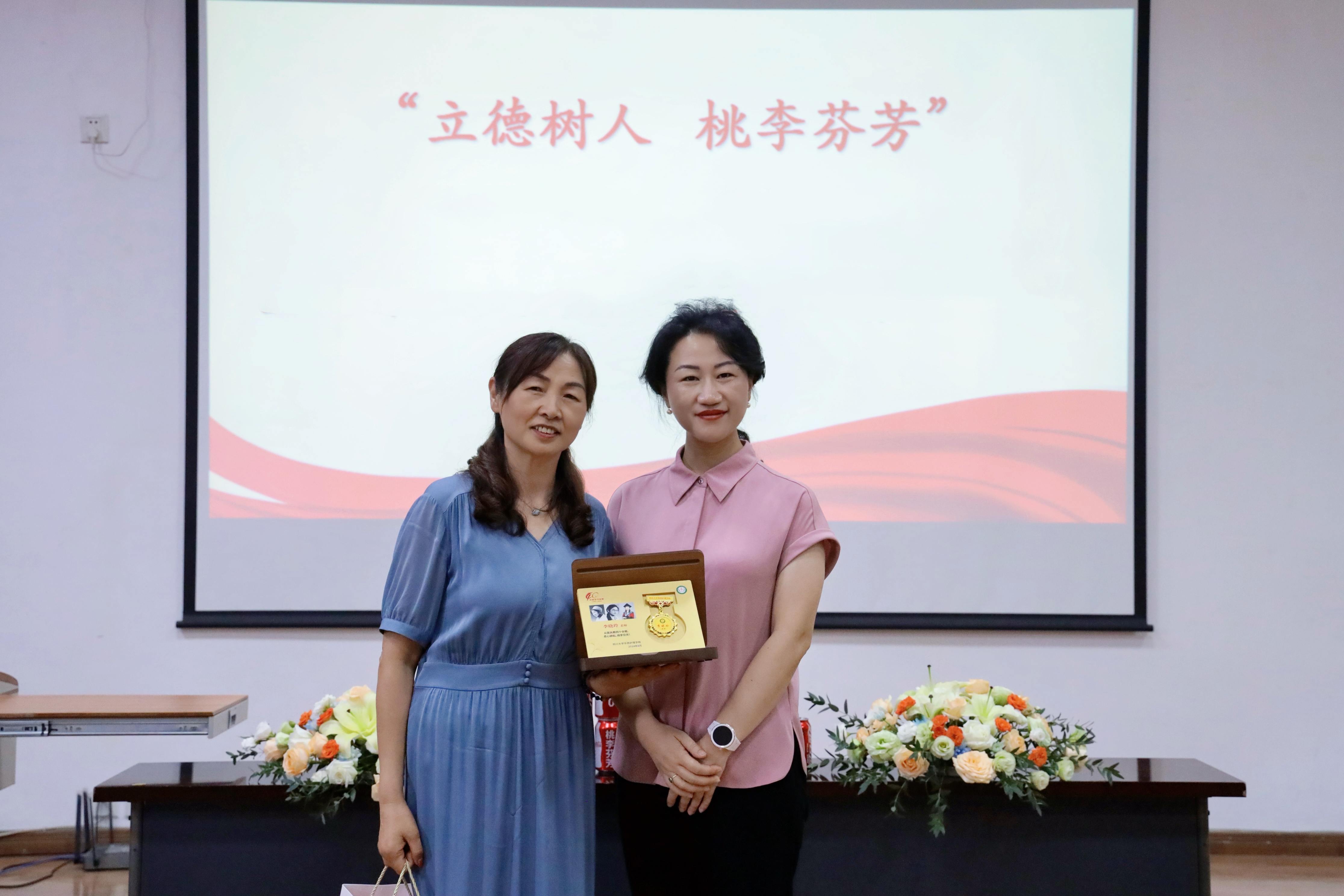 李卡院长为李晓玲老师送上学院专门定制的纪念礼品及纪念勋章。