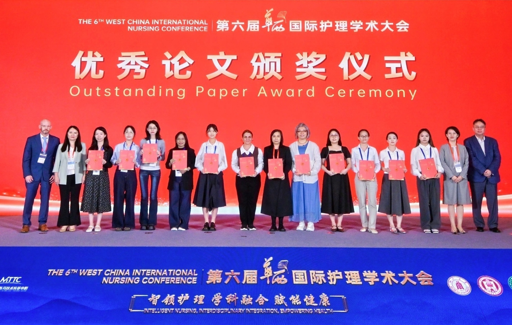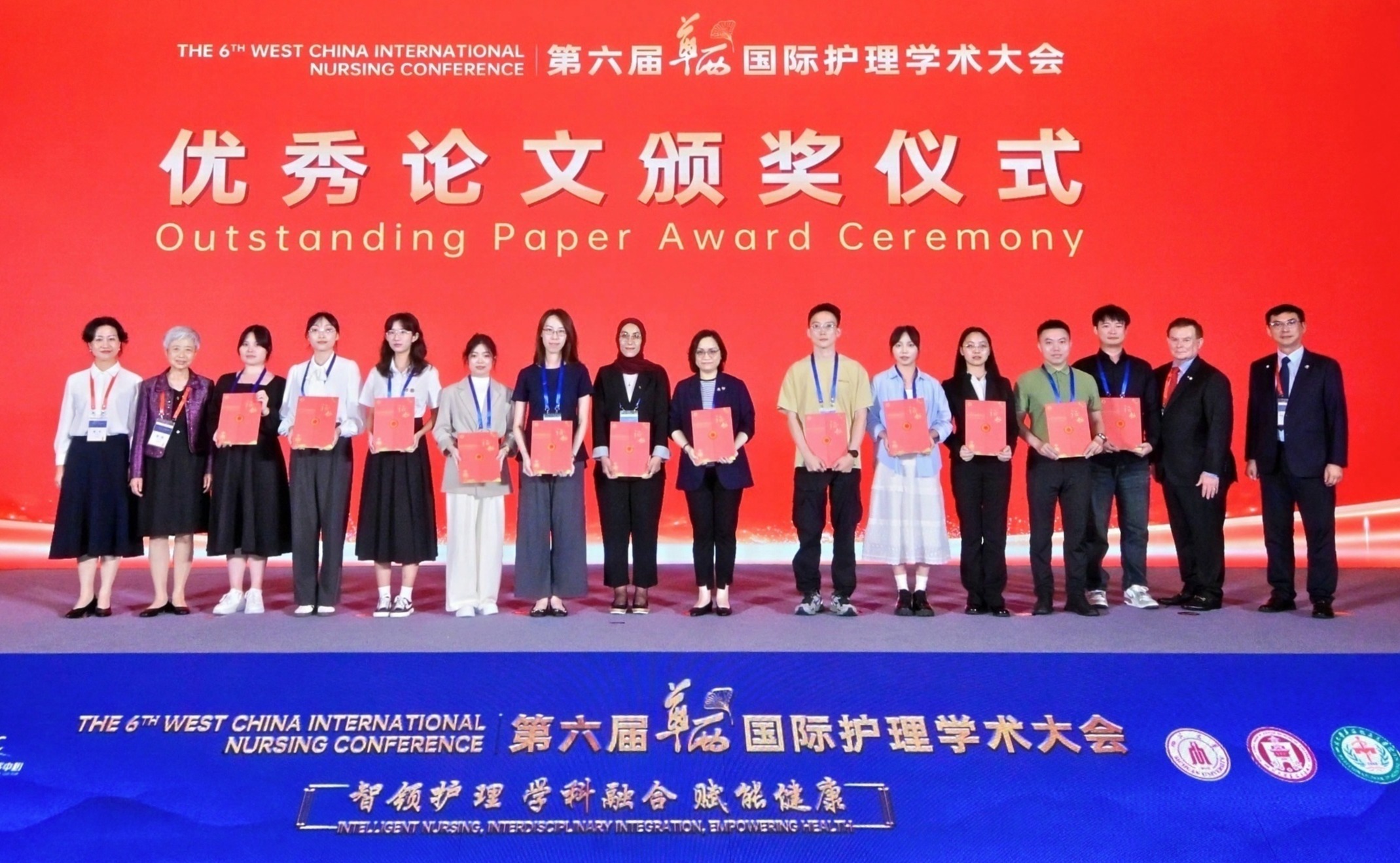甘肃省人民医院副院长、兰州大学护理学院院长韩琳教授,成都中医药大学护理学院院长高静教授,美国太平洋路德大学护理学院副院长Daniel Cline教授,新加坡国立大学杨潞龄医学院李陈爱礼护理研究中心研究副主任谭维新副教授,为荣获优秀论文三等奖获奖代表颁奖。