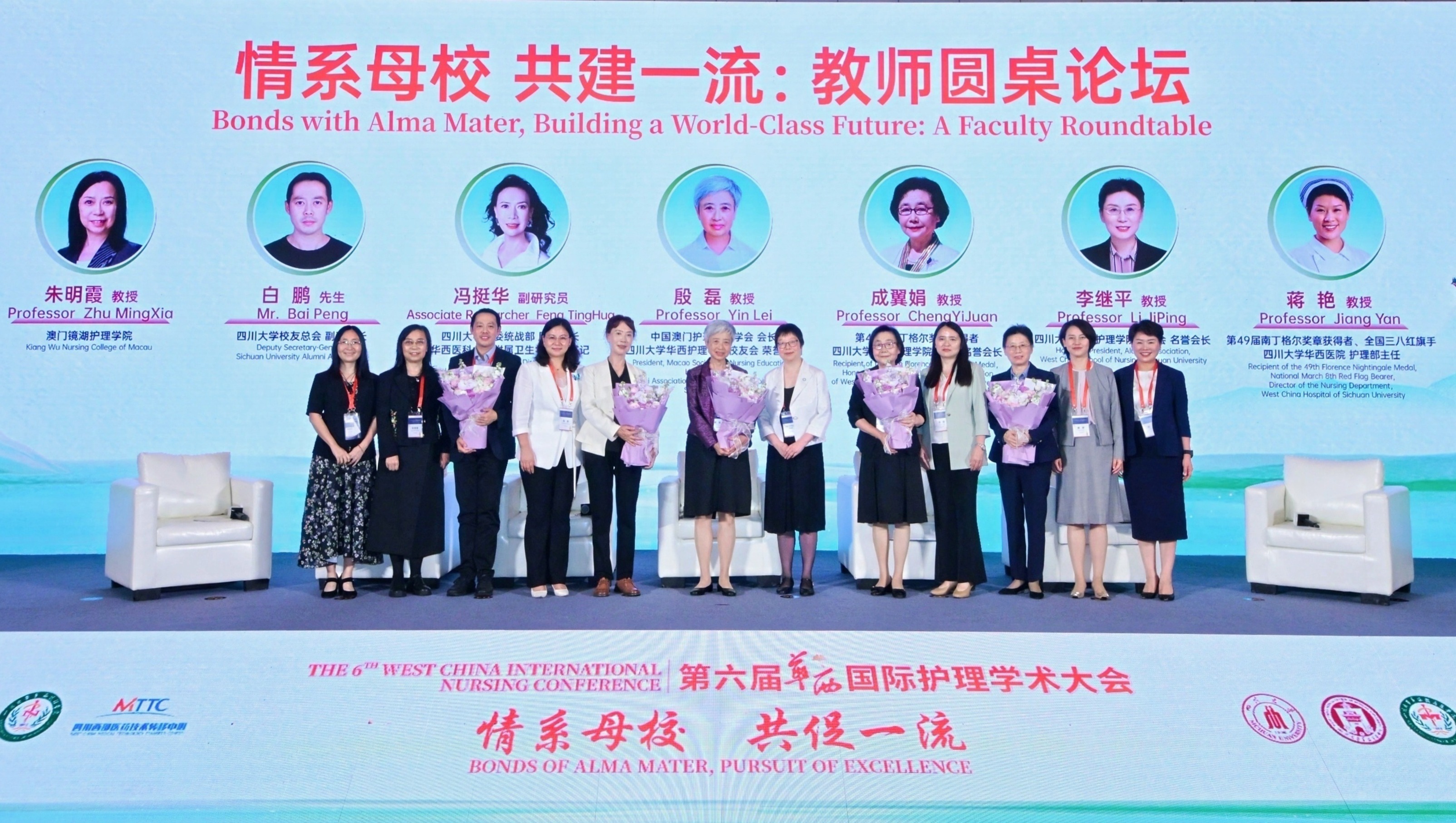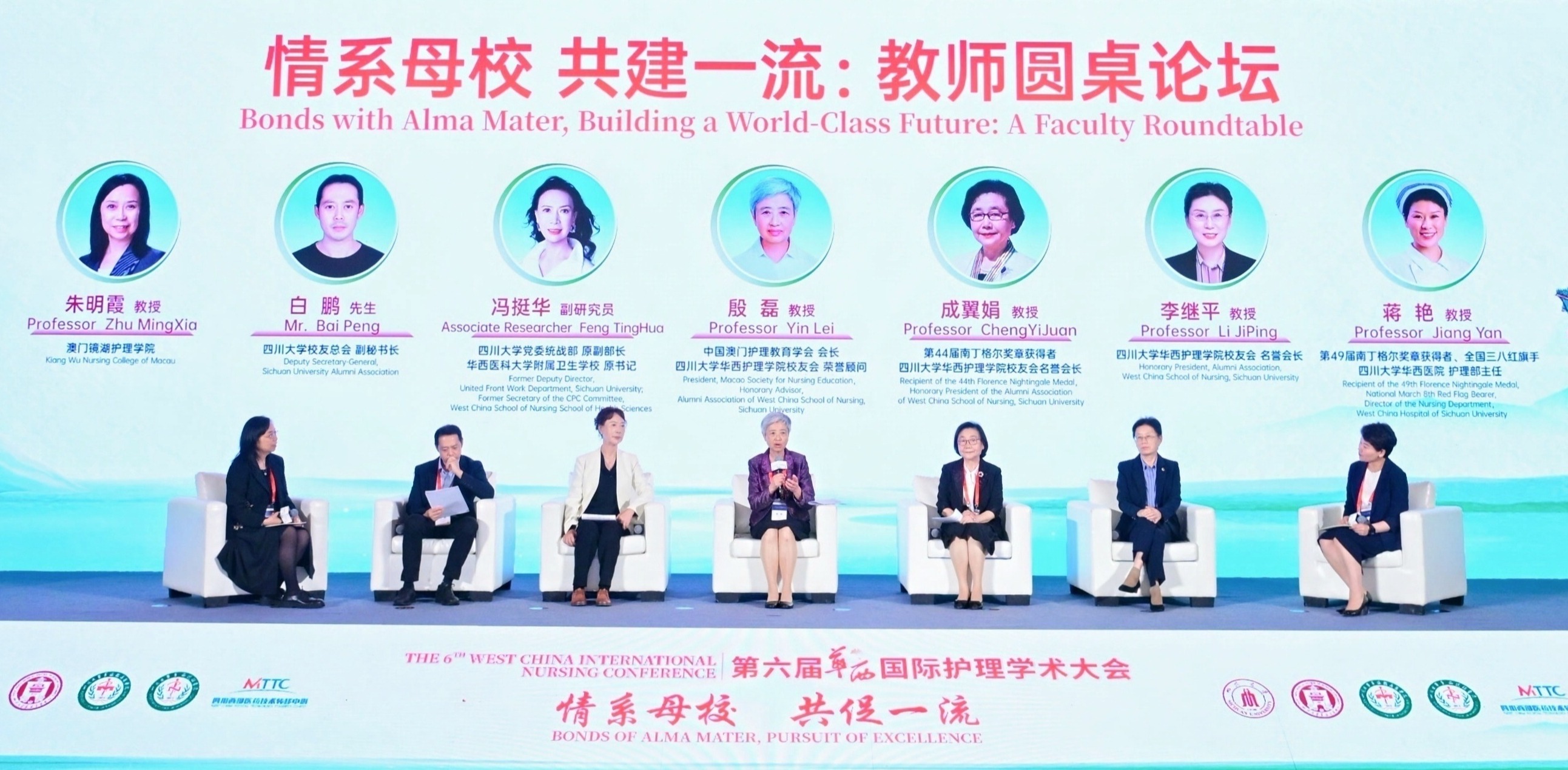 中国澳门护理教育学会会长、bat365中文官方网站校友会荣誉顾问殷磊教授,bat365中文官方网站党委统战部原副部长、华西医科大学附属卫生学校原书记冯挺华副教授,第44届南丁格尔奖章获得者、bat365中文官方网站校友会名誉会长成翼娟教授,bat365中文官方网站校友会名誉会长李继平教授,bat365中文官方网站校友总会白鹏副秘书长在教师圆桌论坛上,分别讲述了对bat365中文官方网站及护理学科发展历程的见证。圆桌论坛由第49届南丁格尔奖章获得者、bat365中文官方网站华西医院护理部主任蒋艳教授,澳门镜湖护理学院朱明霞教授主持。