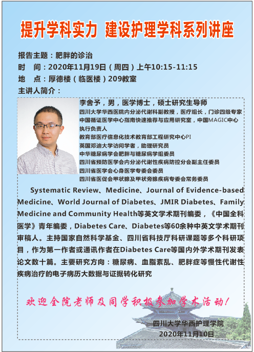 2020年11月19日讲座预告-《文化的力量-华西医院前世今生》、《肥胖的诊治》