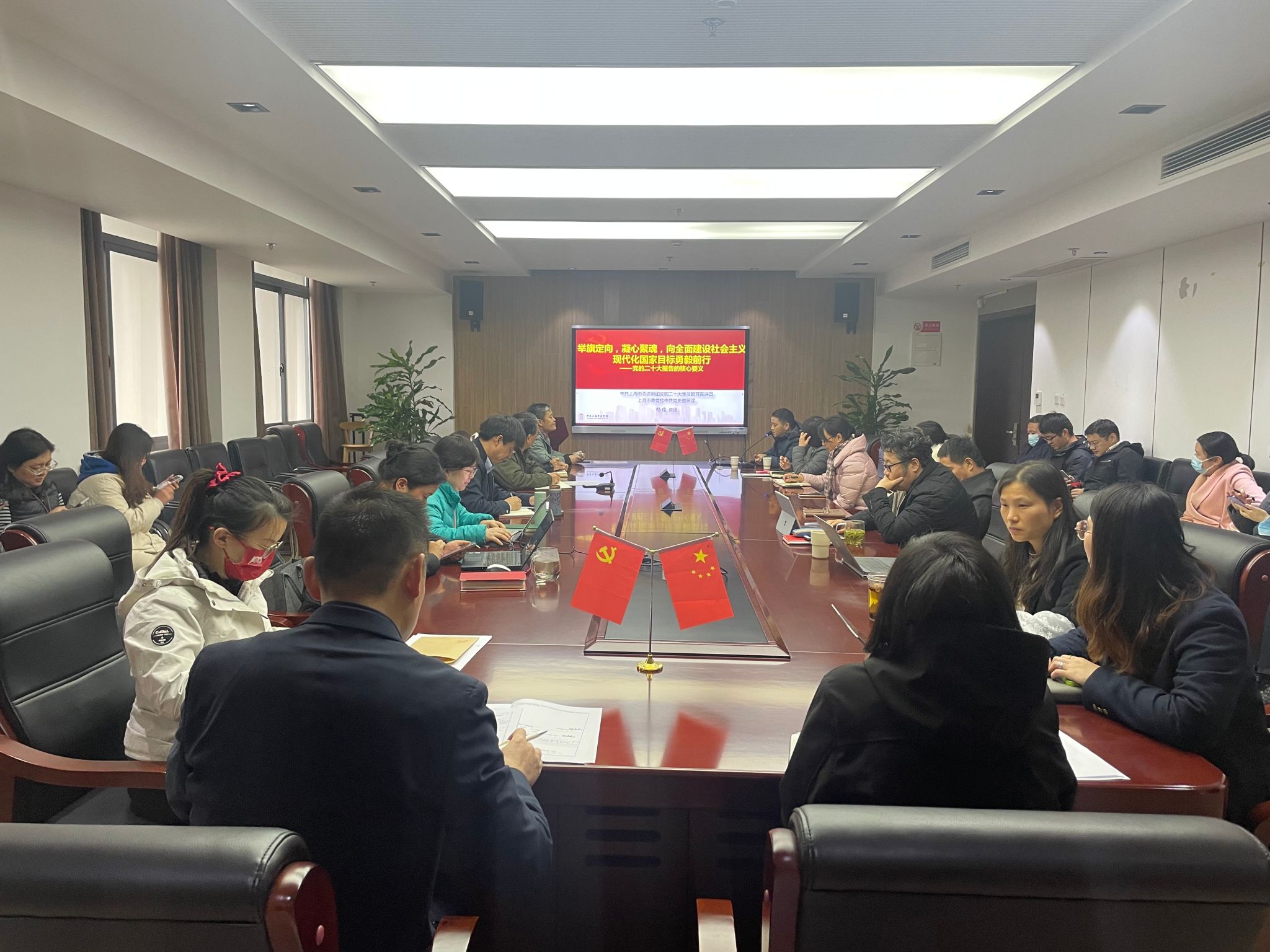 11月30日下午,jdb电子中国官方网站党委中心组(扩大)学习会在306会议室顺利举行。会议邀请了上海市委党校中共党史教研部主任杨俊教授作题为“举旗定向,凝心聚魂,向全面建设社会主义现代化国家目标勇毅前行——党的二十大报告的核心要义”的报告。jdb电子中国官方网站党委中心组成员、院办党支部、本科生党支部参加了本次学习会。