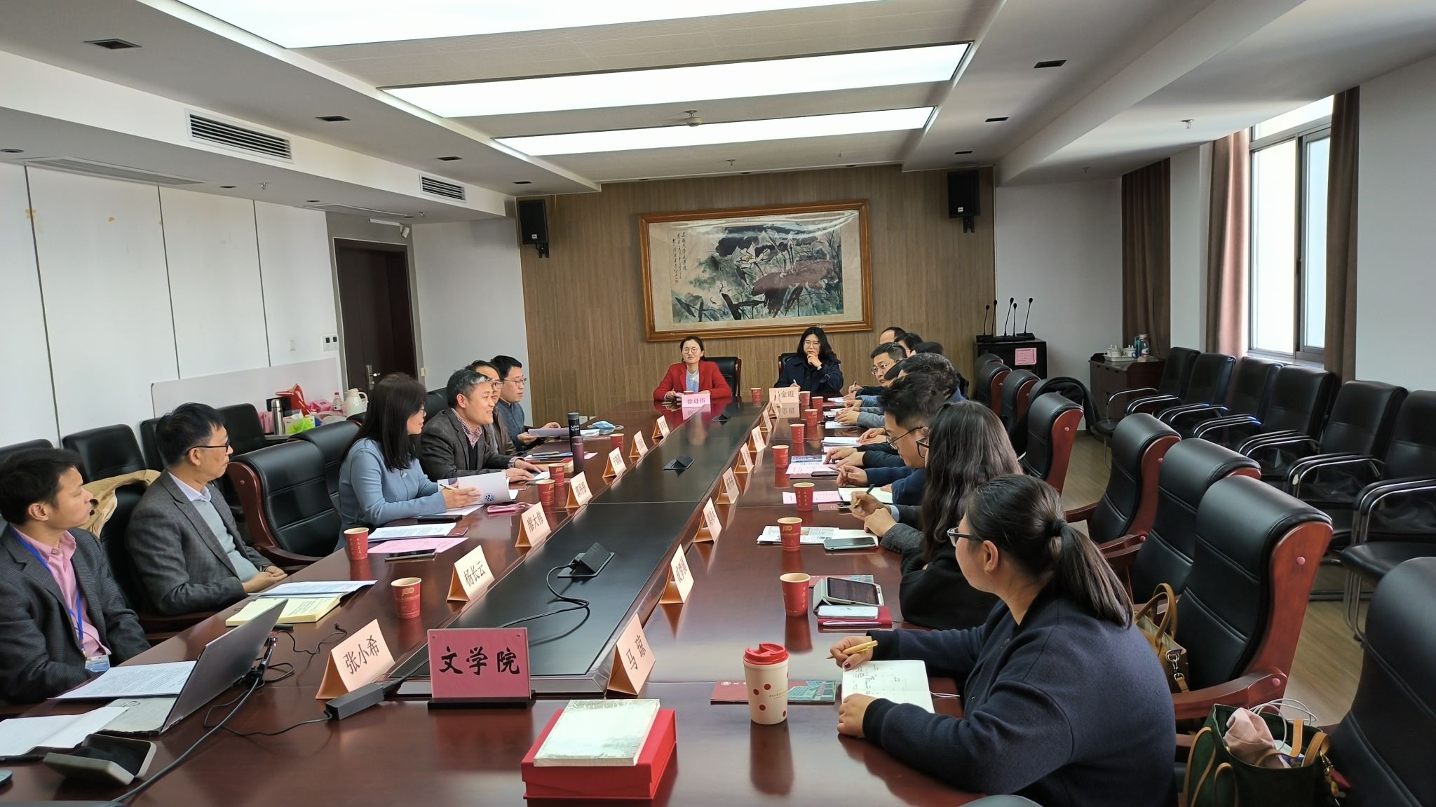 2023年3月13日下午,浙江工商大学人文与传播学院副院长张瑜一行来访jdb电子,会议由副院长宁镇疆主持,历史系主任郭丹彤、中文系副主任张宇超、历史系副主任杨长云、中文系丁治民、历史系廖大伟教授、历史系教师张小希出席了活动。宁镇疆简要介绍了jdb电子中国官方网站的历史沿革及基本情况,张瑜介绍了浙江工商大学人文与传播学院的基本情况。郭丹彤、张宇超分别介绍了历史学科和中文学科的发展现状,主要涉及学科建设、教学招生和学术活动三个方面。随后,双方就具体问题展开交流,包括如何推行导师制、教学实践活动、将数字+融入教学活动等,在交流会的最后,双方交换了学术代表作。(张小希供稿)