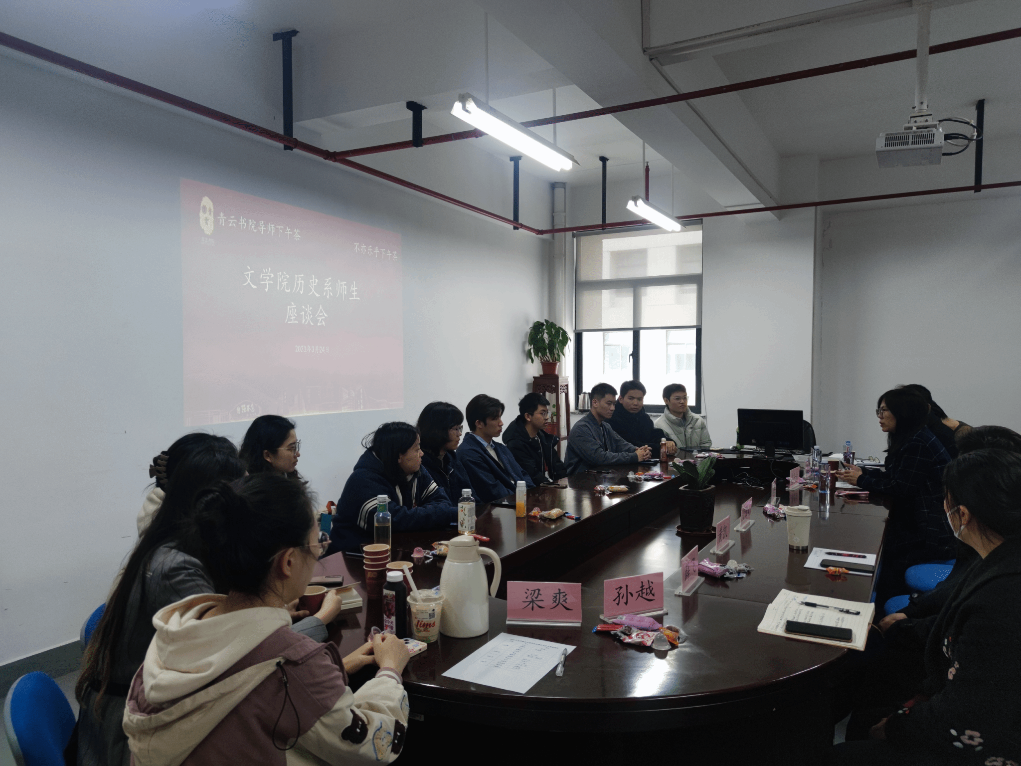 为增进jdb电子中国官方网站师生间的交流互动,倾听广大学子心声,拉进师生间距离,进一步做好本科生教育培养工作。2023年3月24日下午,“青云书院导师下午茶•中文系、历史系师生座谈会”分别在学院306会议室、308会议室举行。学院党委书记陆甦颖,党委副书记、副院长丁佳蒙,副院长刘旭光,各系领导,班导师,本科生教学秘书,本科生辅导员及各班级学生代表,共计近60人参加会议。中文系师生座谈会由中文系主任张永禄主持,历史系师生座谈会由历史系主任郭丹彤主持。
