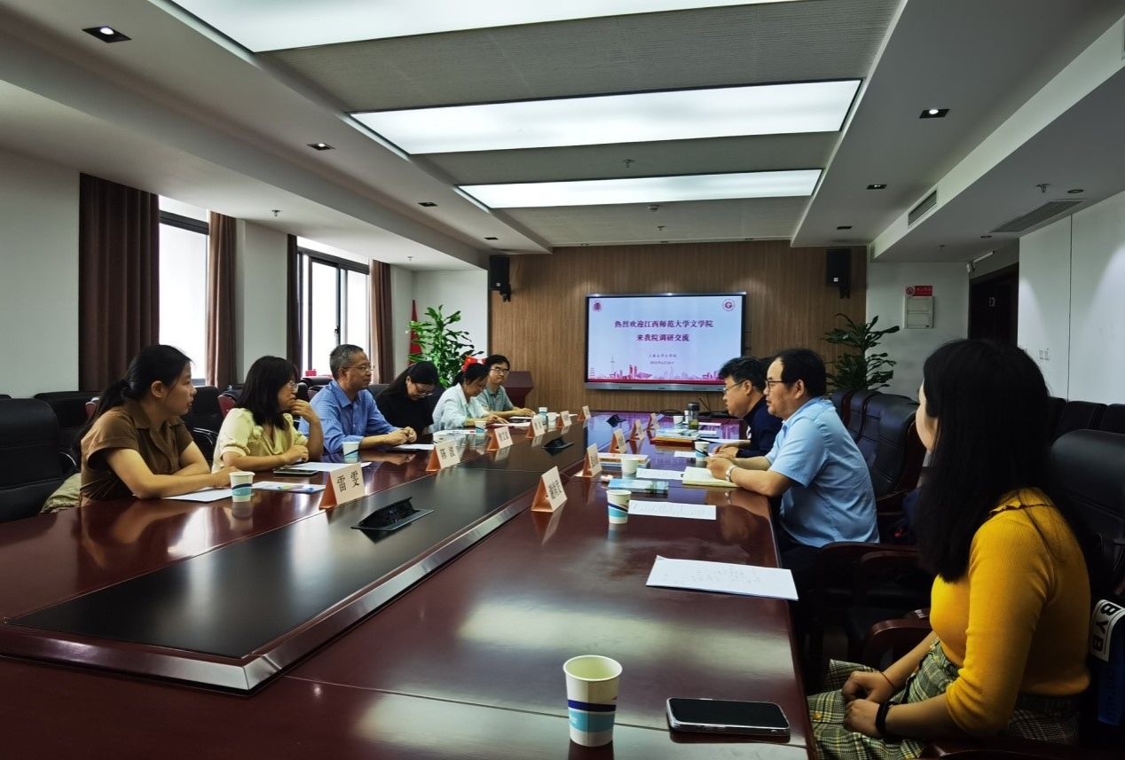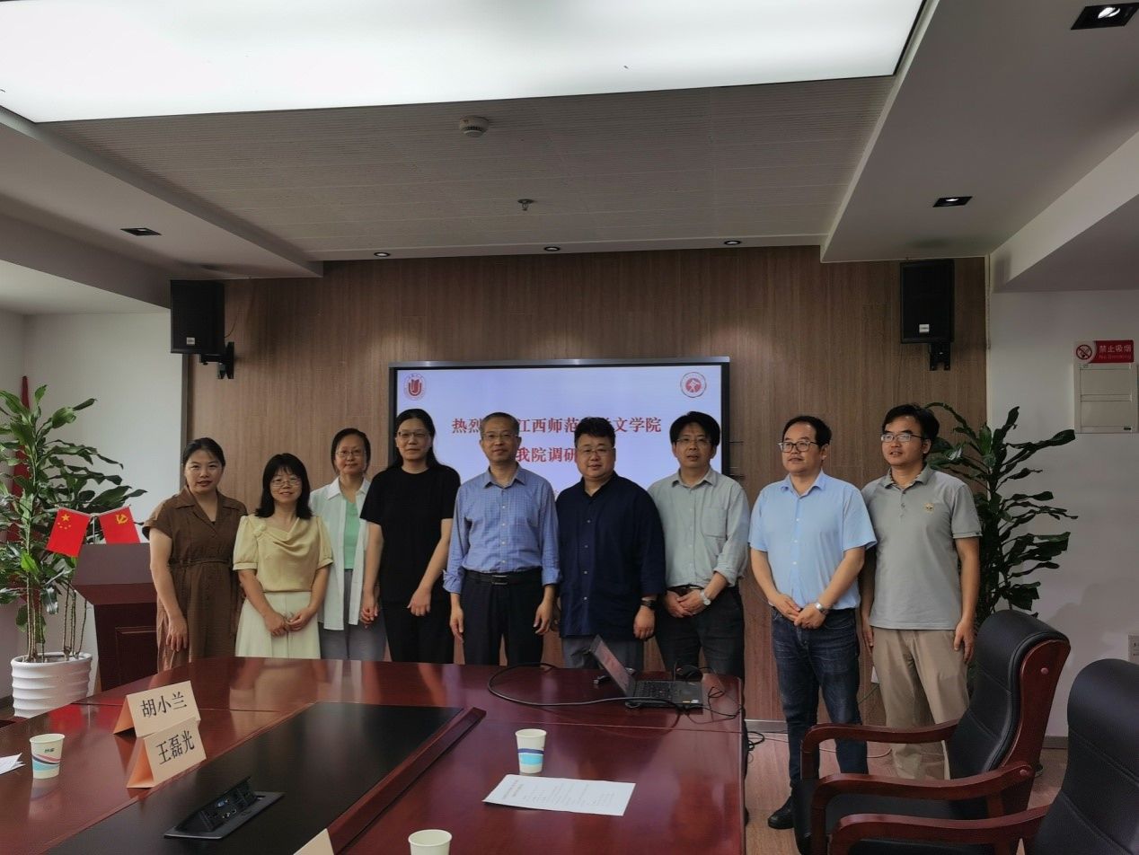 6月26日上午,江西师范大学jdb电子中国官方网站院长詹艾斌教授一行来jdb电子访问,调研创意写作学科发展情况。院党委副书记、院长刘旭光教授、中文系系主任张永禄教授和创意写作学科谭旭东教授、许道军教授、谢尚发博士、叶端博士参与调研座谈。