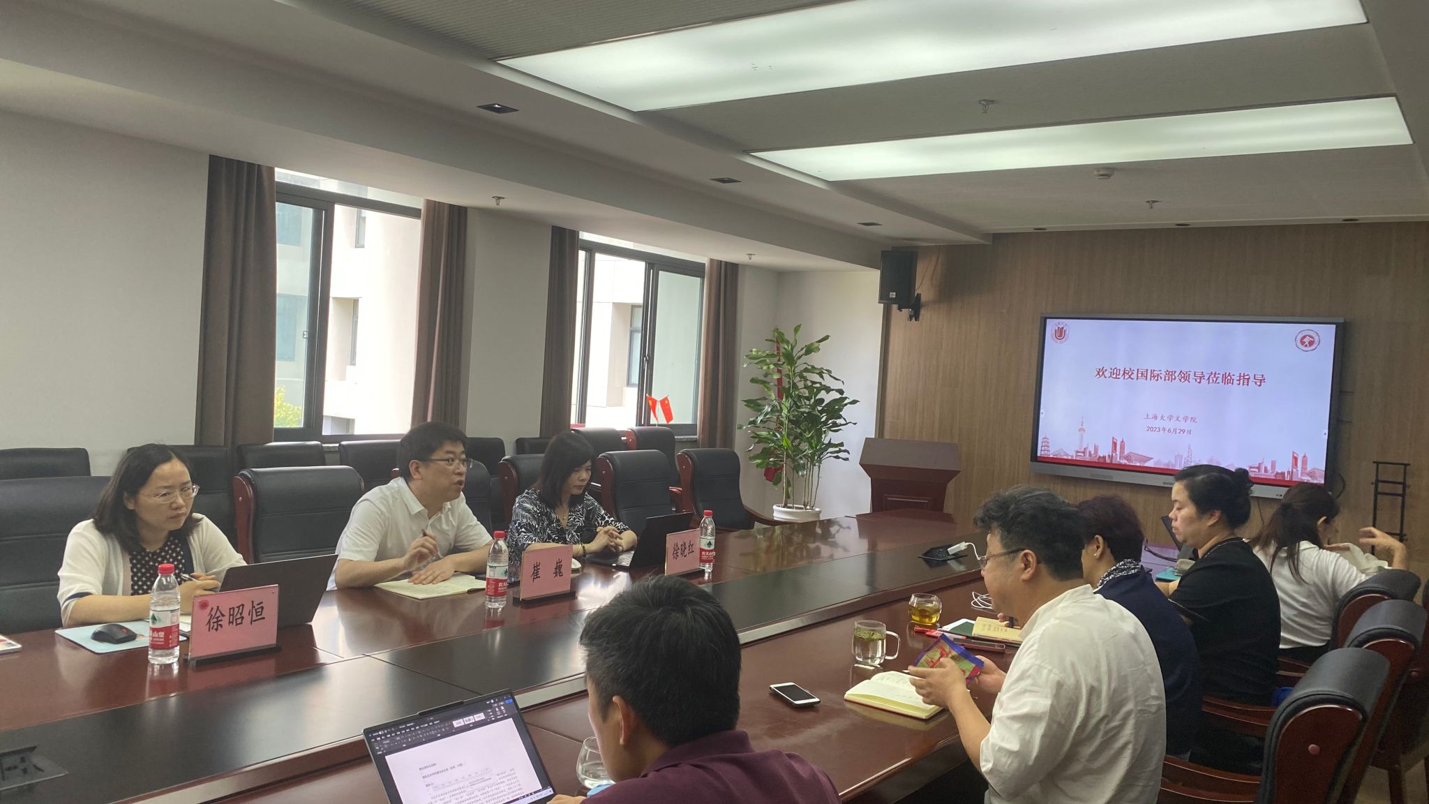 6月29日上午,学校国际部党委副书记、副部长、国际合作处处长崔巍,国际合作处副处长徐晓红一行来jdb电子调研。jdb电子中国官方网站党委书记陆甦颖、党委副书记、院长刘旭光、党委副书记、副院长丁佳蒙、副院长宁镇疆、中文系主任张永禄、历史系主任郭丹彤、历史系党支部书记朱虹、文化研究生党支部书记朱善杰等参加了此次调研交流,会议在306会议室举行。