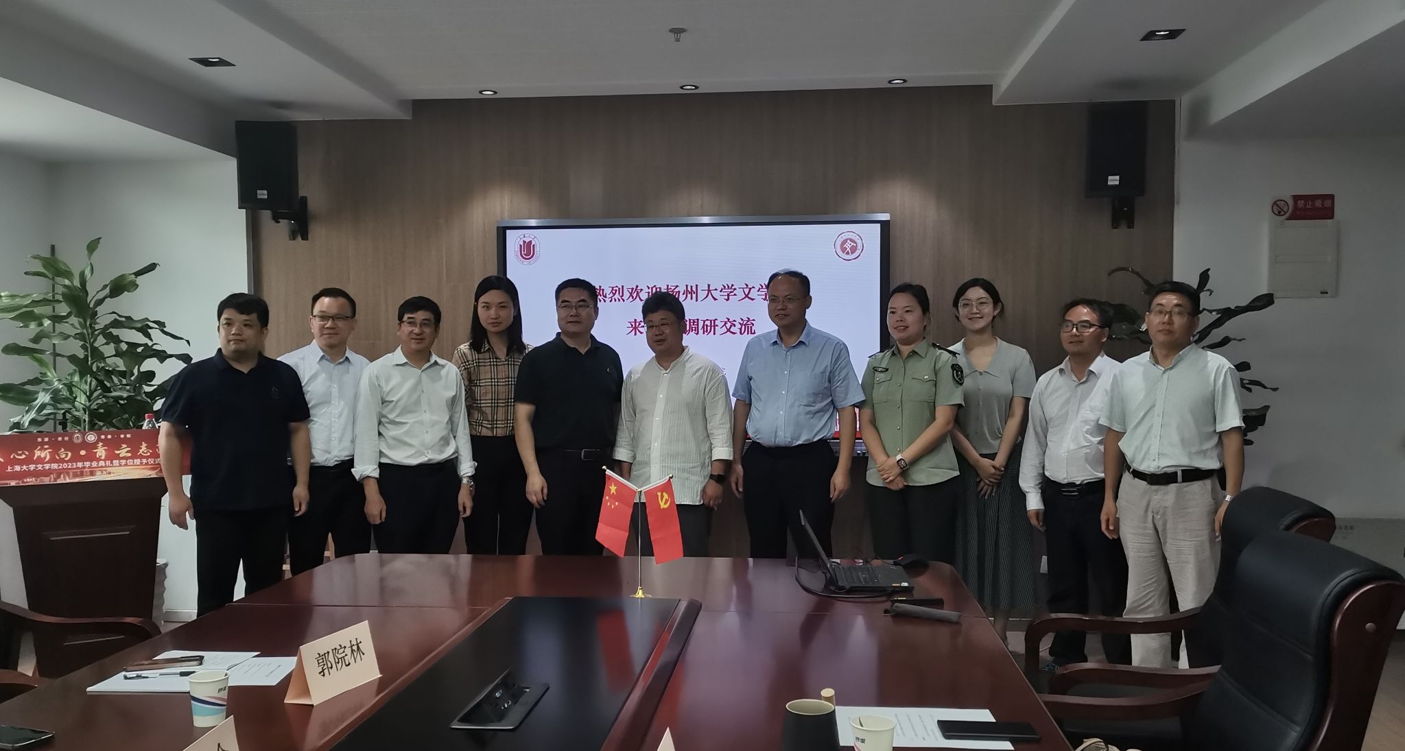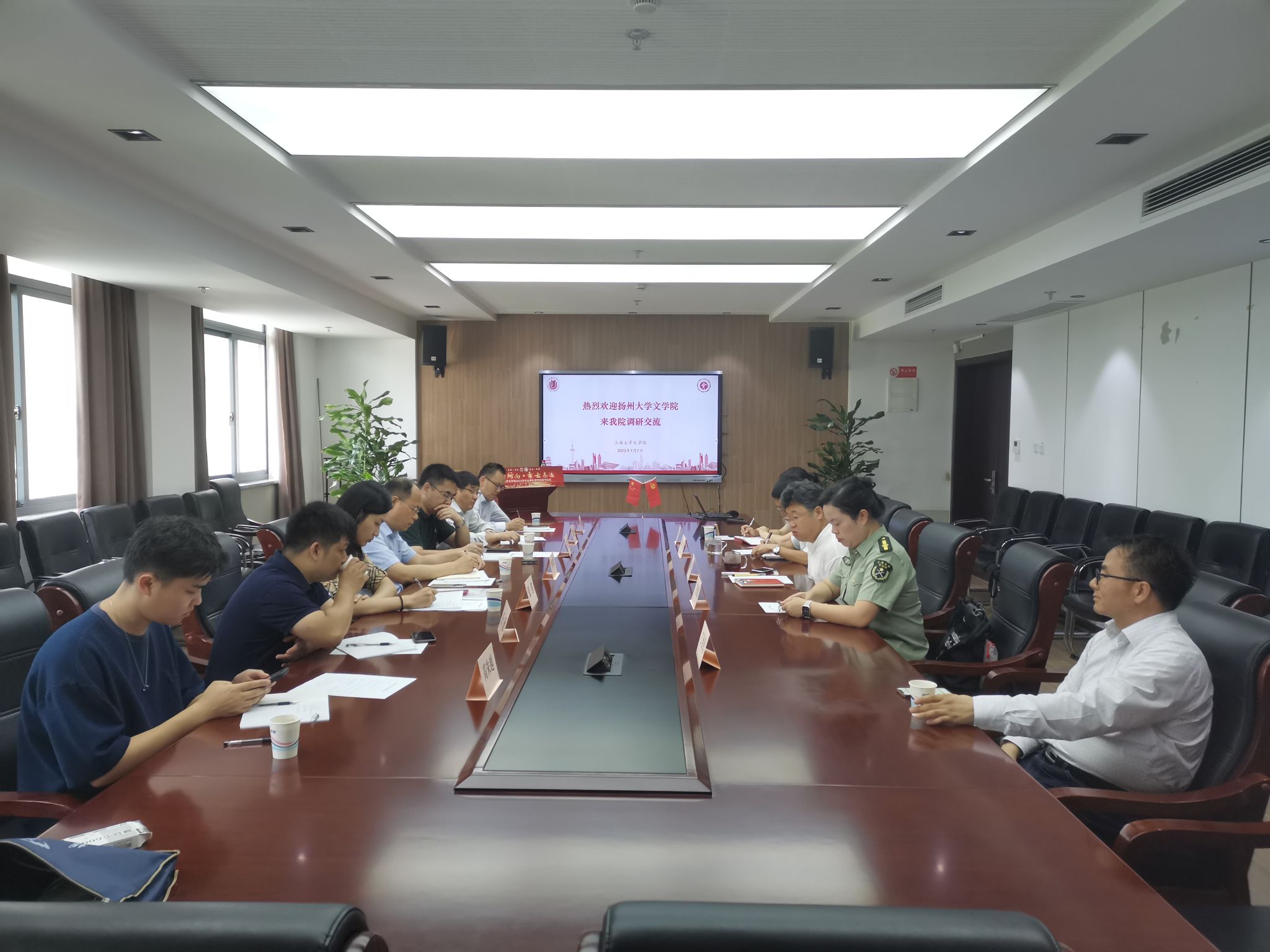 7月7日上午,扬州大学jdb电子中国官方网站党委书记李怀军一行来jdb电子调研,双方就主题教育、学科建设、科研管理等工作进行交流。jdb电子院长刘旭光,党委副书记、副院长丁佳蒙,中文系副主任梁奇、宋鸽,以及丁治民教授出席交流会。