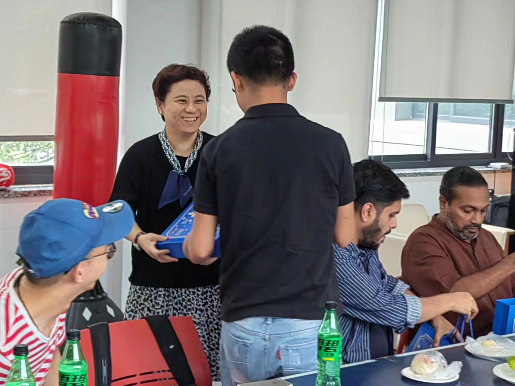 茶话会伊始,陆书记为老师们送上了美好的节日祝福,同时也为每一位老师准备了具有jdb电子中国官方网站特色的精美的中秋礼物,并向各位外籍教师们介绍中国传统节日中秋节的历史与习俗。随后,老师们一同品尝了月饼,现场活动气氛温馨。在欢声笑语中,大家一边品尝美食,一边交流着彼此的生活和工作,分享迎接中秋的喜悦。