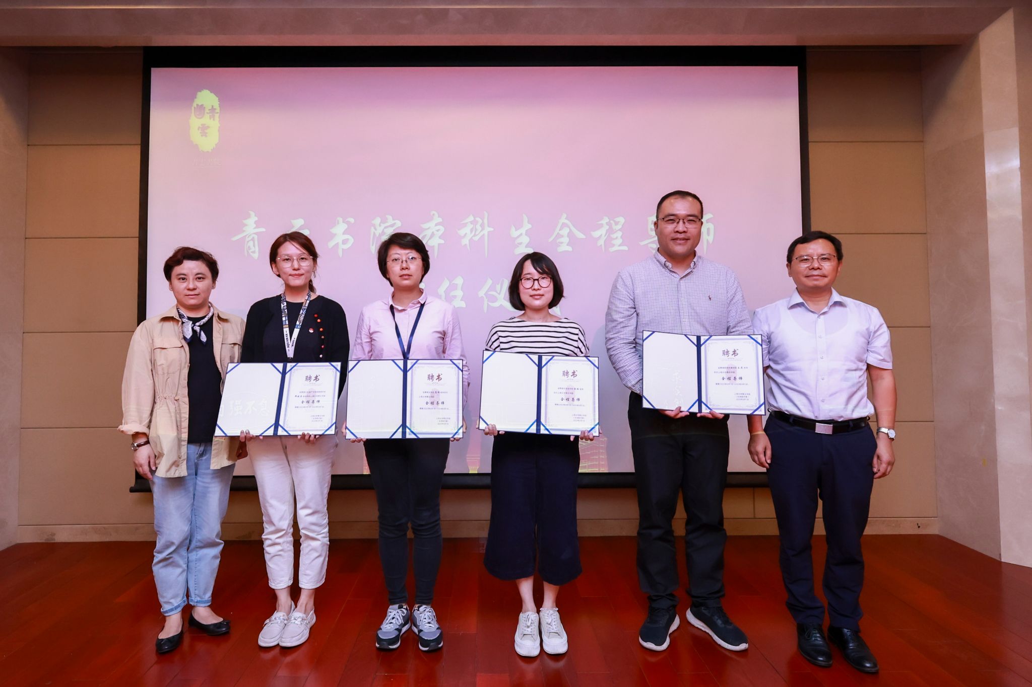 接着是青云书院本科生全程导师聘任仪式。全程导师不仅是优秀的学者,更是学生重要支持者和引导者,王虎老师、郑晓蕖老师、金璐老师和高明老师作为导师代表接受聘书,在场的同学们也纷纷上前向所有老师送上鲜花。