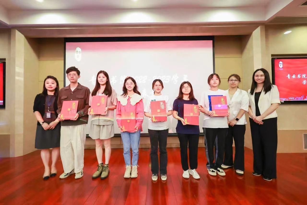 过去的一年青云书院涌现出了许多优秀个人和团体,社区学院佟丽宁老师、外语学院贾小琴老师、文信学院韦淑珍老师为获得的2022-2023学年青云书院荣誉的获奖代表们颁奖。