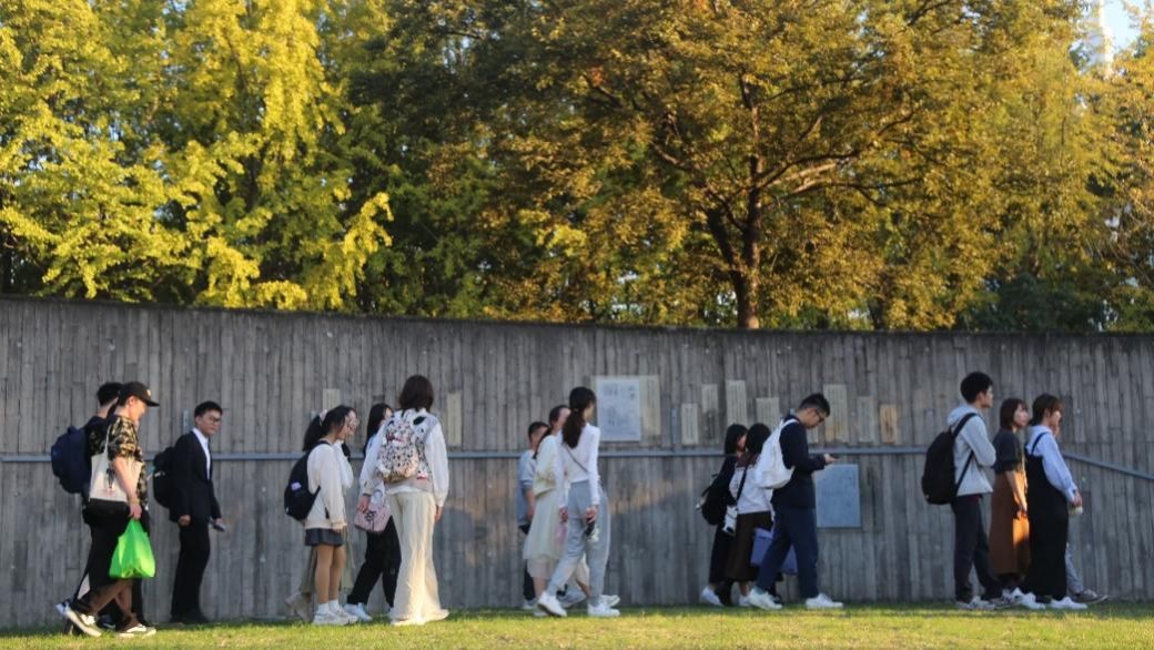 随后,同学们参观我校校园,从“老校址”到“溯园”,再到独具特色的“菊花展”与“泮池观鱼”,日方师生深入了解我校荣誉光辉的历史,感受清新优美的校园生态环境。早稻田大学的鲤川诗织不禁赞叹:“太美了!”