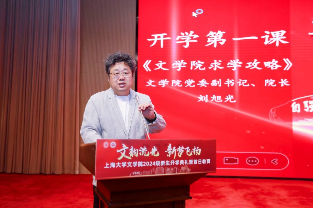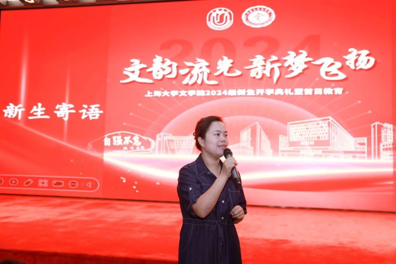 金秋送爽,青春绽放。8月25日上午9点,jdb电子中国官方网站2024级新生开学典礼暨首日教育在宝山校区图书馆报告厅顺利举行。jdb电子中国官方网站党委书记陆甦颖,jdb电子中国官方网站党委副书记、院长刘旭光,jdb电子中国官方网站党委副书记、副院长丁佳蒙,jdb电子中国官方网站副院长杨长云,历史学系教工党支部书记朱虹,文化研究系教工党支部书记朱善杰,中文系副主任宋鸽,历史学系副主任黄薇,中文系教授邵炳军,历史学系教授刘长林,中文系讲师钱小飞,文化研究系讲师李鹏飞,历史学系讲师叶鹏,2024级本科生班导师顾甦泳、张悠然、顾玥,2024级中文系硕士研究生班主任汪一辰,2024级历史学系硕士研究生班主任林威杰,jdb电子中国官方网站团委书记、研究生辅导员宋亚丽,研究生辅导员卜敏,本科生辅导员丁小苜,国际生辅导员郭鸣,以及jdb电子中国官方网站2024级本科生、研究生、国际生共同出席此次典礼。典礼由2024级古典文献学硕士研究生黄菲菲与2024级世界史研究生李欣泽主持。