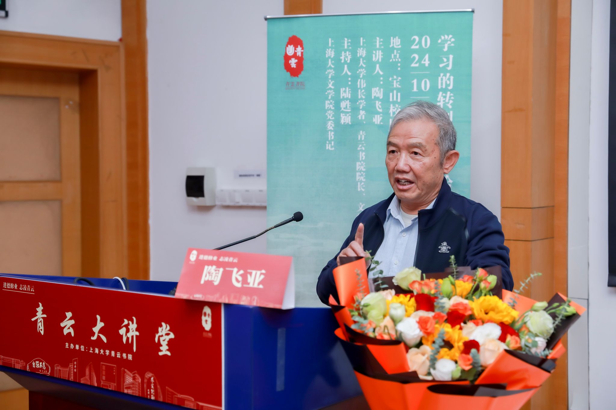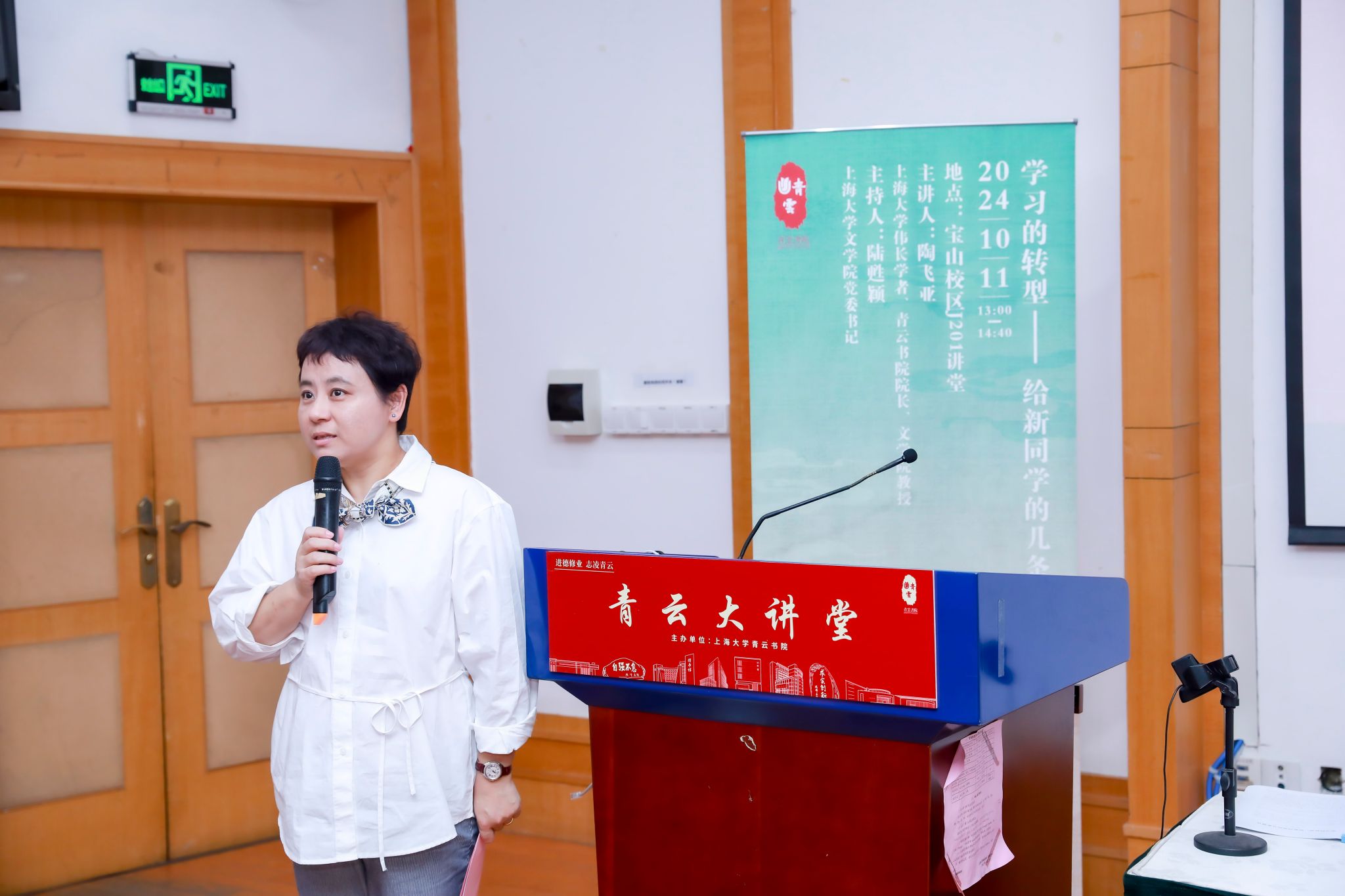 活动伊始,jdb电子中国官方网站党委书记陆甦颖对2024级青云书院本科生的加入表示欢迎,她向同学们介绍了青云书院的基本情况,并阐释了“青云大讲坛”立足大学生成长发展的人文需求,坚持深层次的文化思考和立足大学生成长发展的价值追求。她表示,在过去的两年,青云书院在学校书院管理中心的指导和支持下,在外语和文信两家学院的共同推进下,已经成功举办了“青云大讲堂”两季20期主题讲座,邀请了20位专家教授,听讲学生总数近4万人次,卓有成效。与此同时,陆书记也向同学们逐一介绍了“青云大讲坛第三季”的主讲嘉宾们,并隆重介绍了本次讲座主讲人青云书院院长陶飞亚教授的研究领域和主要成就。