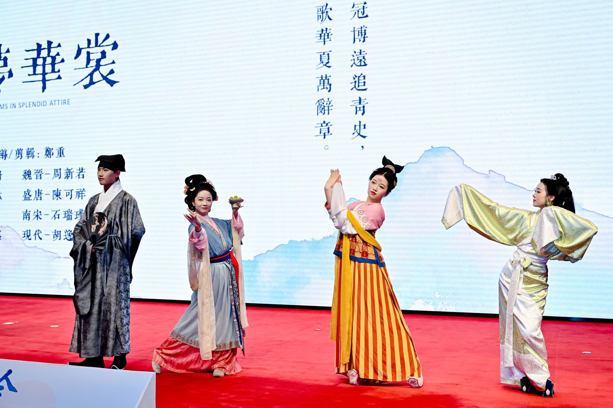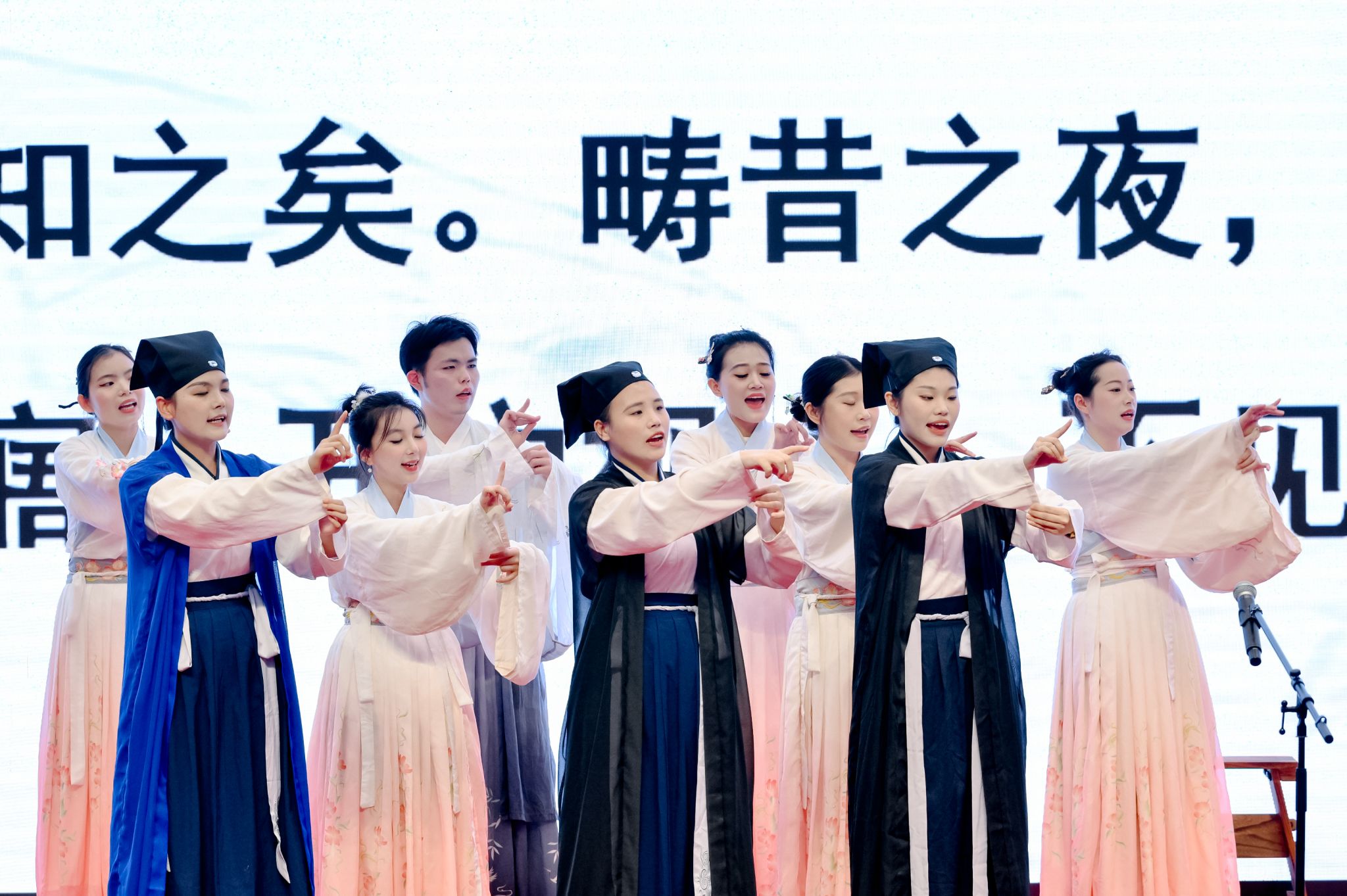 大会尾声阶段“韶音妙舞”展演环节同样精妙绝伦。上海市新杨中学、上海市梅陇中学、山西运城河东吟诵社与广州珠江月诗词学会携手jdb电子中国官方网站重华汉服社为大会奉上精彩演出。
