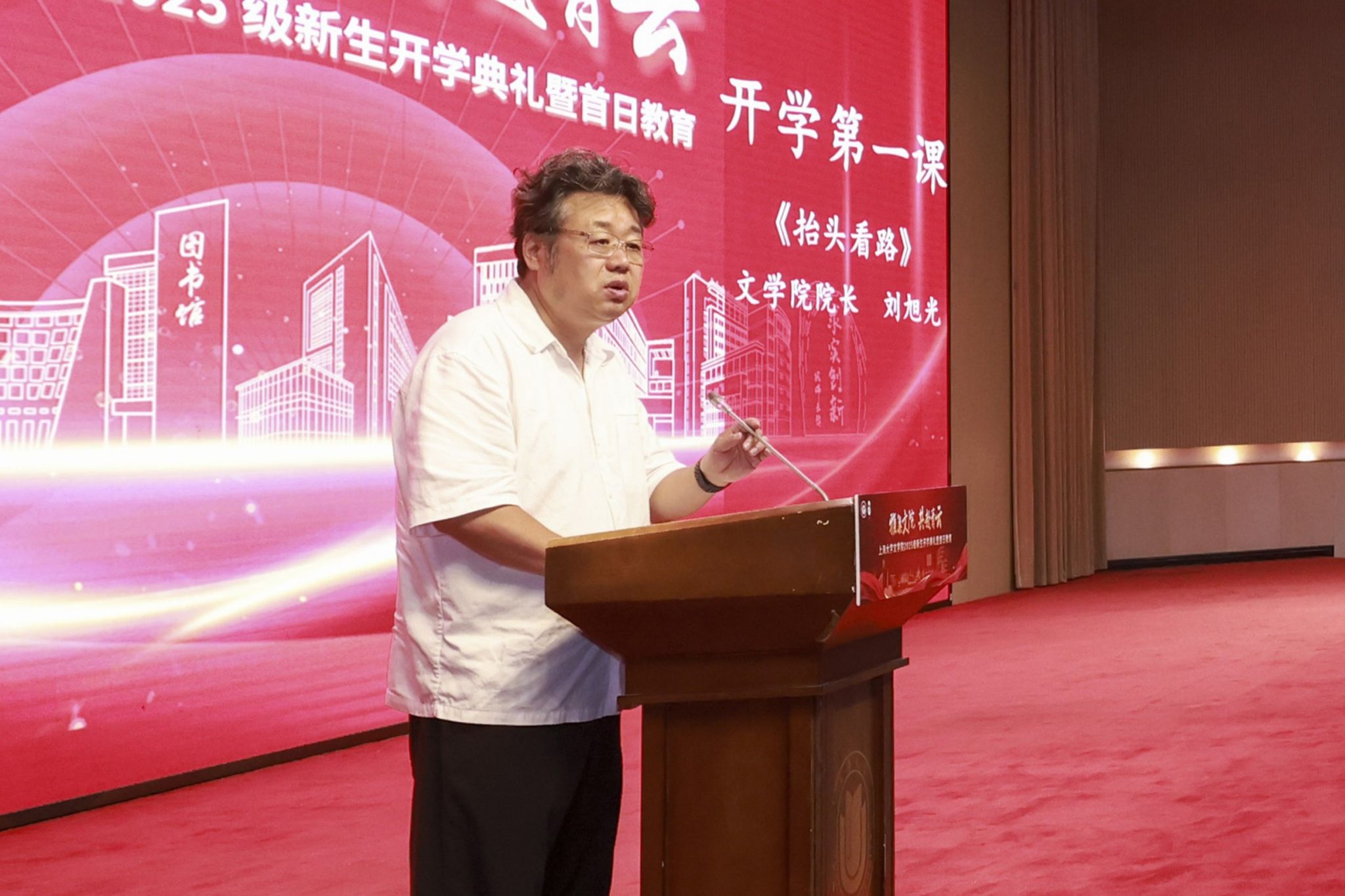 表演结束后,jdb电子中国官方网站党委副书记、院长刘旭光为新生带来题为《抬头看路》的开学第一课。刘旭光院长首先展示了已毕业同学赠送给jdb电子中国官方网站辅导员的一面锦旗,谈到其中“不弃一子”的评价是jdb电子中国官方网站始终秉持的态度。其后,刘旭光院长围绕着“抬头看路”,对同学选择未来道路的发展提出殷切的期盼,希望同学们能够在jdb电子中国官方网站的几年里有计划、有目标地学习与成长。