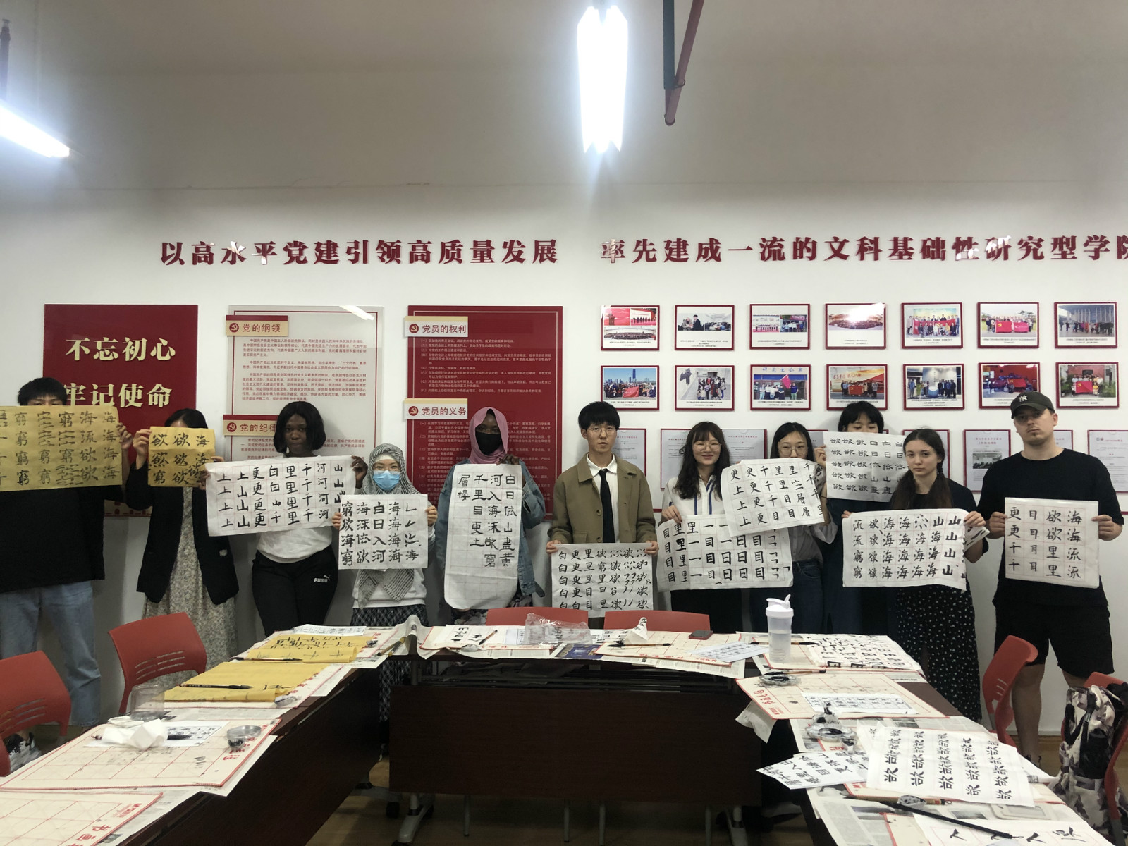 5月13日晚18点,jdb电子中国官方网站“中外学生书法兴趣坊”第九期活动在jdb电子中国官方网站206党建中心成功举办,jdb电子中国官方网站国际学生辅导员郭鸣老师与十五位中外学生共同参与了本次活动。