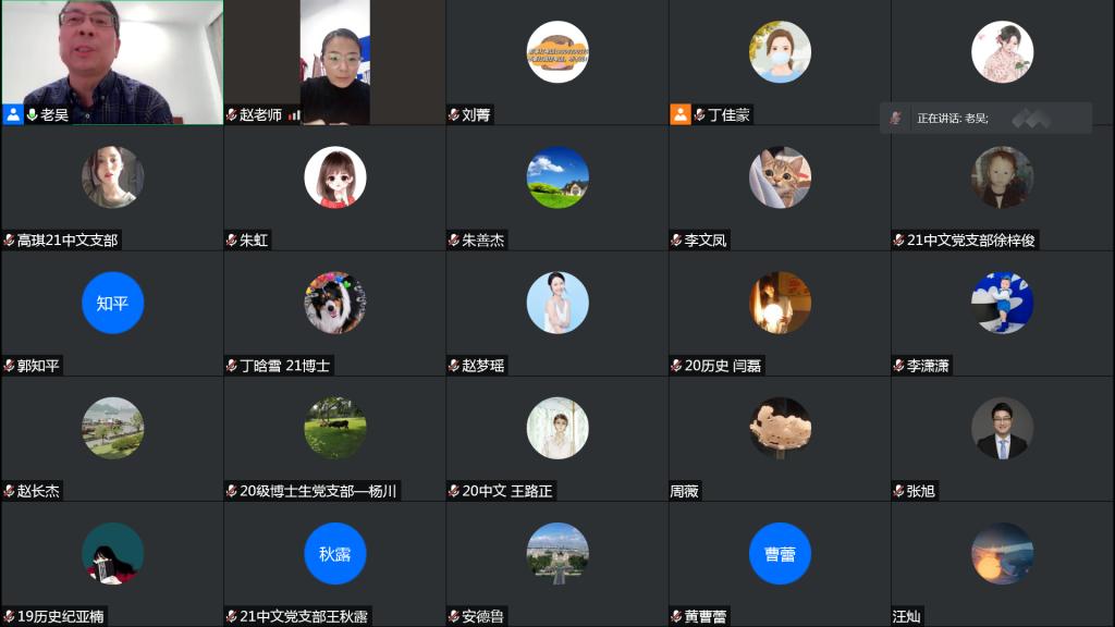 学院党委副书记、副院长丁佳蒙介绍了抗疫期间学工团队参与抗疫工作以及学生志愿者主动担当作为的志愿工作情况,学工团队各位辅导员老师牢牢秉持“哪里需要就去哪里”的信念,始终冲在疫情防控最前沿守护学生。学生志愿者们勇于担当,积极奉献,充分展现了文院学子“博文雅人、转识成智”的优良风范。她号召全体党员要积极行动,担当作为,争做疫情防控的参与者、健康校园的守护者。坚定战胜疫情信心,共克时艰!