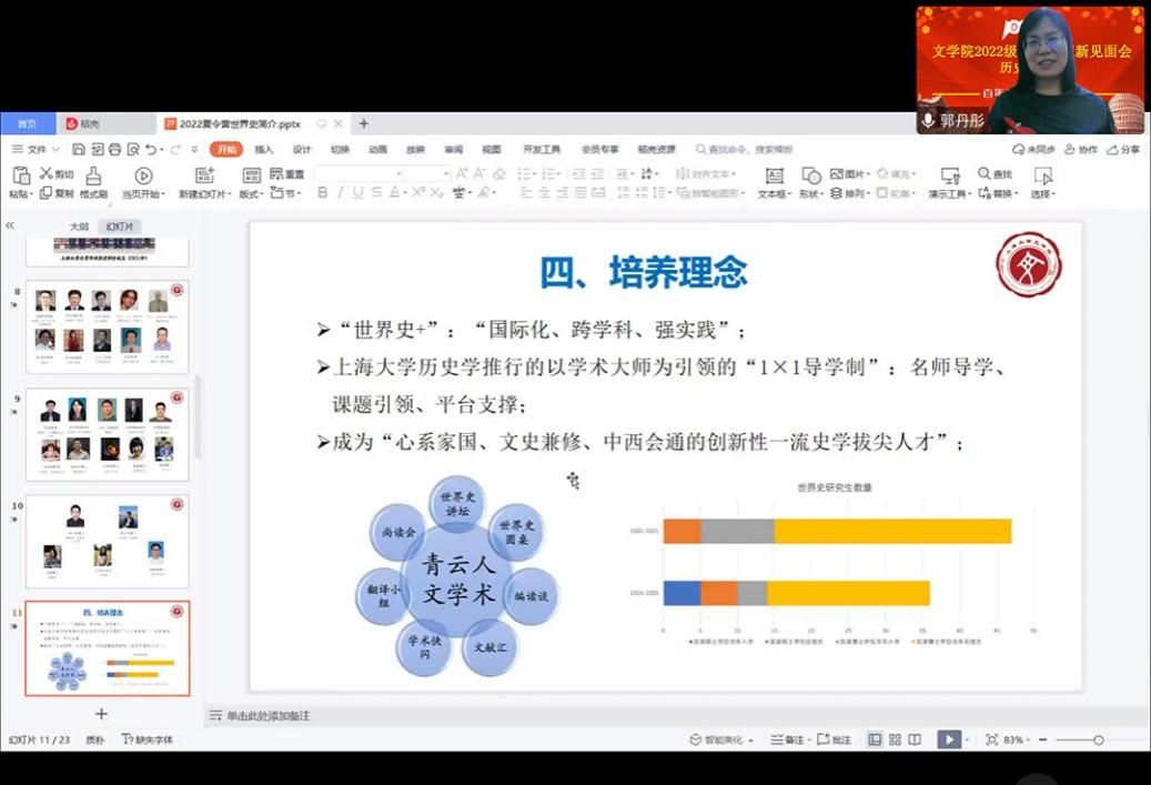为帮助研究生新生更好地适应研究生阶段学习生活,2022年9月9日上午9点整,jdb电子中国官方网站2022级研究生迎新见面会历史系专场以线上会议的形式成功举办。jdb电子中国官方网站副院长宁镇疆,历史系副主任舒健、杨长云,历史系教授郭丹彤、郭红、黄保罗、肖清和,青年教师黄凯、焦姣出席本次见面会,jdb电子中国官方网站历史系、政治学2022级研究生新生参与本次活动。活动由历史系副主任杨长云主持。