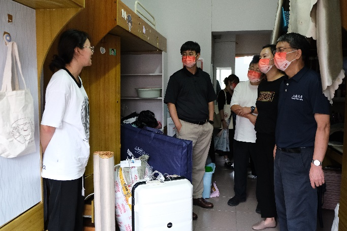 9月5日下午,jdb电子中国官方网站党委书记吴仲钢,院长张勇安,党委副书记、副院长丁佳蒙,副院长刘旭光,研究生辅导员宋亚丽走访了位于宝山校区的研究生新生宿舍。