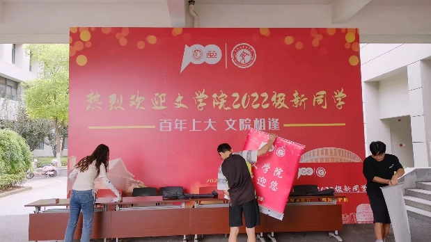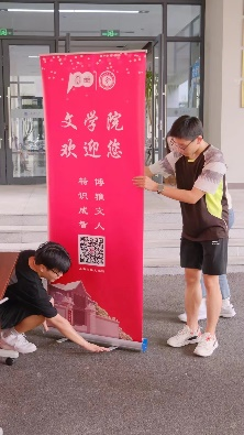 9月4日,在辅导员老师们的指导下,jdb电子中国官方网站五名2021级研究生迎新志愿者开始进行场地布置。桌椅摆放、易拉宝组装、新生手册领取、纪念品分配……志愿者们细化迎新流程的每一个环节,查缺补漏,为迎新创造了便利的环境。