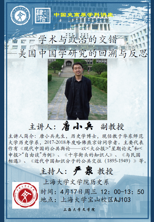 讲座名称:学术与政治的交错—美国中国学研究的回溯与反思