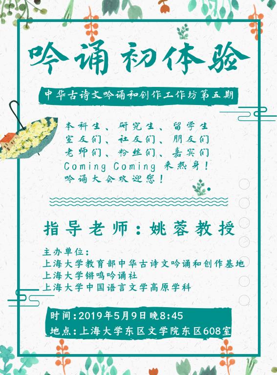 吟诵初体验 中华古诗文吟诵和创作工作坊第五期