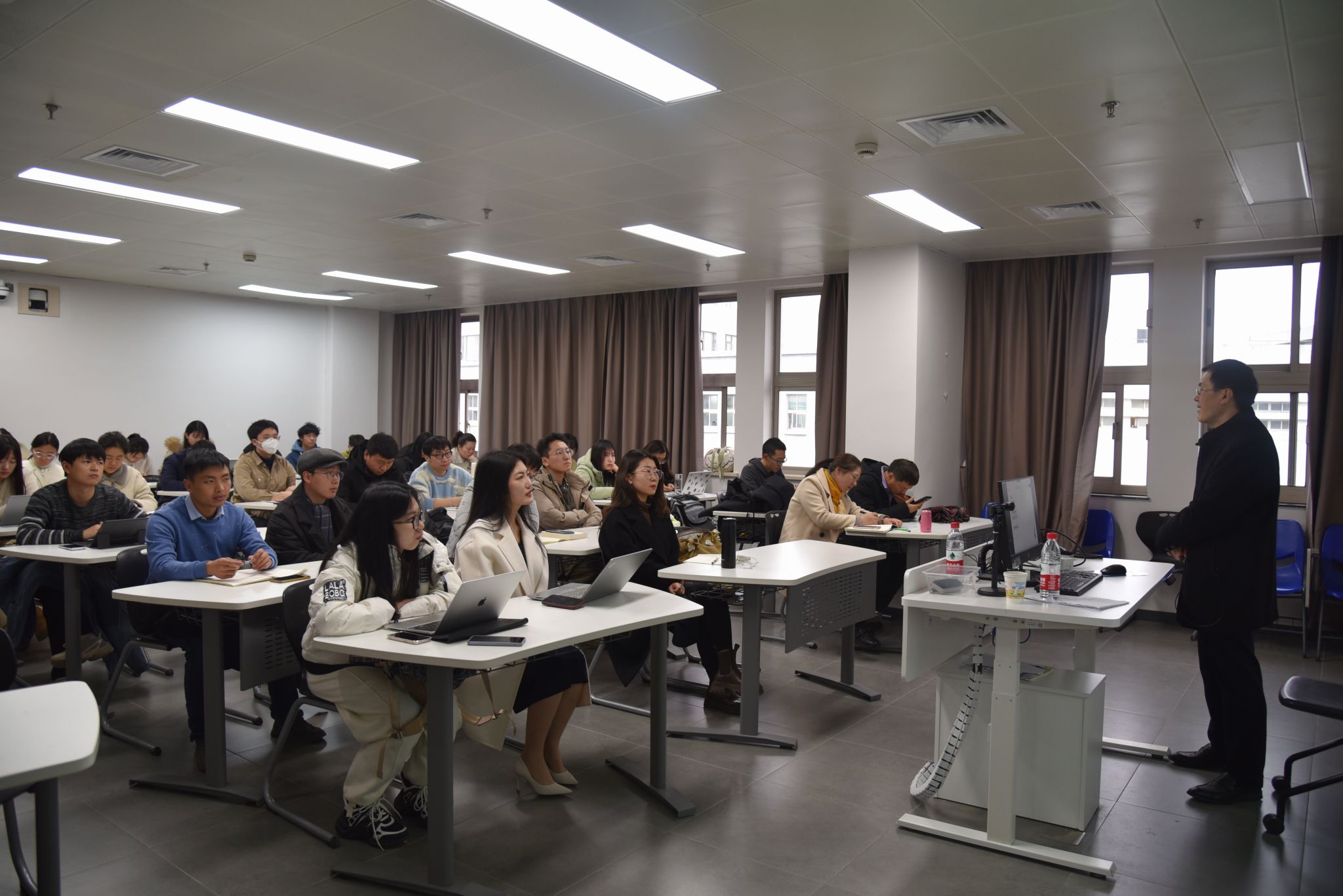 2月23日下午,华东师范大学中文系教授彭国忠应邀走进“人文研究学术规范与论文写作‘四进’课堂”,于我校宝山校区B楼415教室举行“从洴澼絖到裂地封:学术观点的凝练与提升”主题讲座,为jdb电子中国官方网站2022级硕士研究生讲授学术论文的观点如何创新。本次讲座由课程主讲老师姚蓉教授主持。此外,本次课程讲座还吸引了其他年级的硕博士研究生和博士后到场学习。
