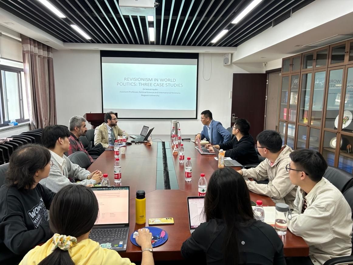 10月28日下午,海峡大学(Boğaziçi University)的Selçuk Aydın博士作了题为“世界政治中的修正主义:案例研究”的讲座。讲座由土耳其中心执行主任杨晨副教授主持。Selçuk基于历史和现实的维度,以俄罗斯、土耳其等国为案例分析了世界政治中修正主义的表现。同时,他还从霸权行为、文明交往与冲突等方面强调了当下世界政治的不确定性和分裂性。