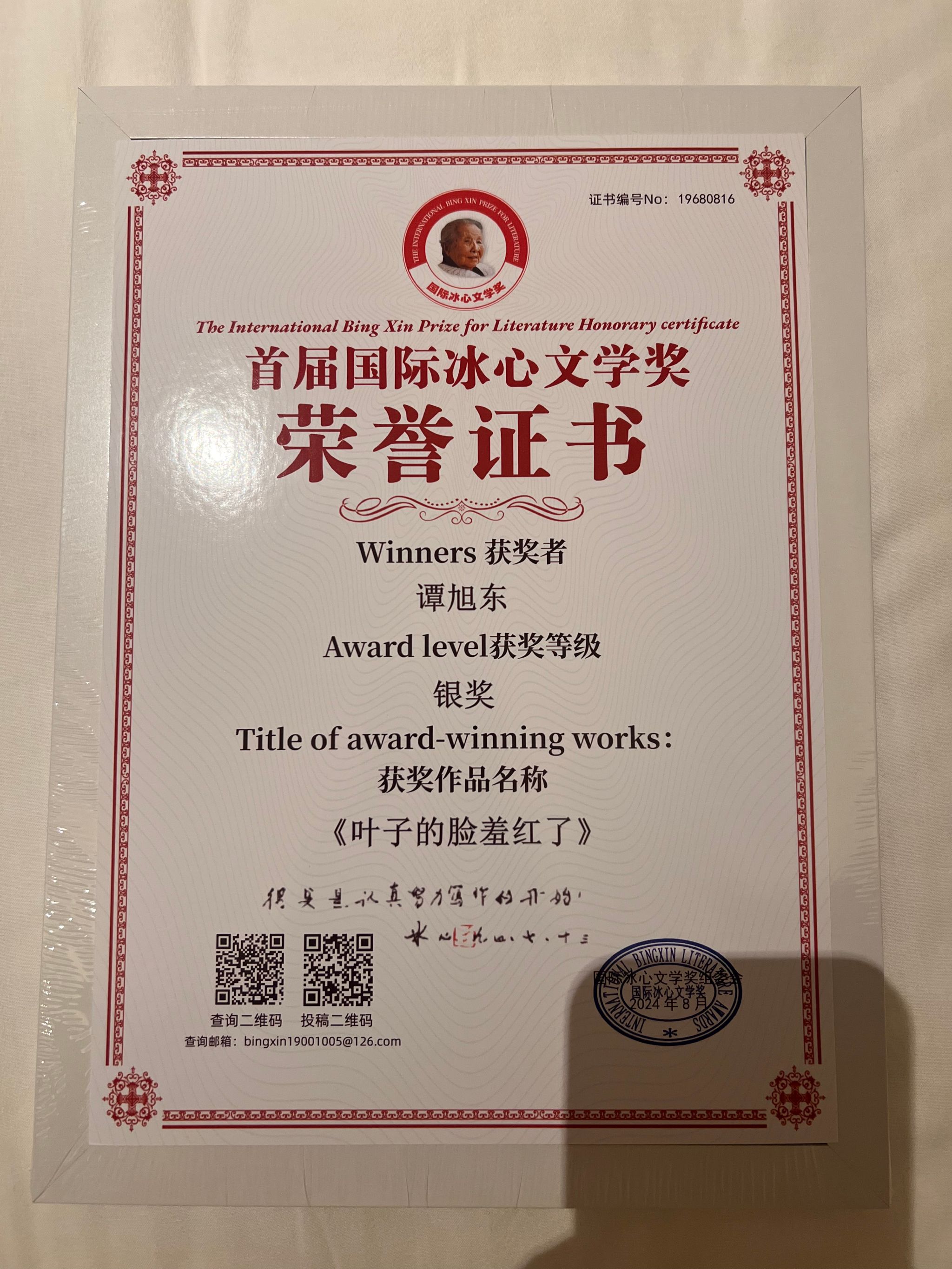 2024年8月22日,“首届国际冰心文学奖东京大会”在日本东京具有百年历史的“自由学园明日馆”举行,我校jdb电子中国官方网站教授谭旭东以儿童诗集《叶子的脸羞红了》获得首届国际冰心文学奖银奖。
