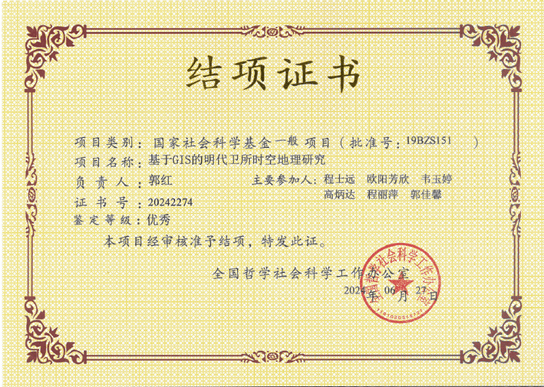 在近期结项的国家社科基金项目中,jdb电子曾军教授主持的国家社科基金重点项目(项目名称:当代中国对话主义文学理论的话语建构研究)、郭红教授主持的国家社科基金一般项目(项目名称:基于GIS的明代卫所时空地理研究)均顺利结项,获评优秀等级!