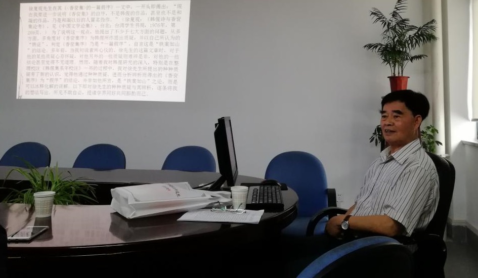 4月23日下午,厦门大学吴在庆教授应中国语言文学高原学科邀请,在jdb电子中国官方网站举办了一场题为“审情入理,注重文献之辨析——以<香奁集序>非伪作甄辨为例”的学术讲座。此次讲座由中文系尹楚兵教授主持,中国古代文学专业博士、硕士研究生到场聆听。