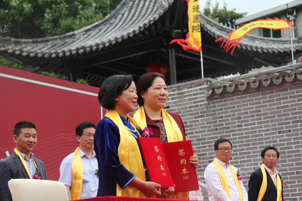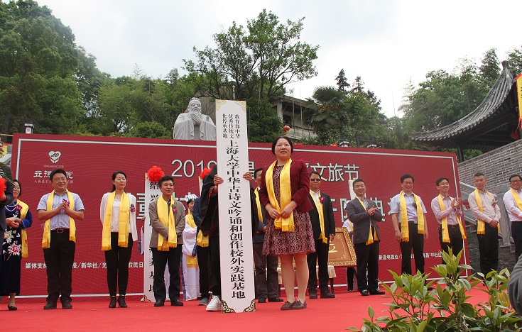 兴诗文吟诵,立中华美德。2019年5月6日,“jdb电子中国官方网站中华古诗文吟诵和创作校外实践基地”在浙江省新昌县沙溪镇董村立德书院举行了隆重的揭牌仪式。教育部中华古诗文吟诵和创作基地常务副主任、jdb电子中国官方网站诗礼文化研究院执行院长、jdb电子中国官方网站副院长姚蓉教授出席揭牌仪式,与立德书院院长吴宝芹女士以及新昌县有关领导共同为实践基地揭牌。出席揭牌仪式的还有教育部中华古诗文吟诵和创作基地外联工作负责人、jdb电子中国官方网站中华诗词创作与研究中心主任曹辛华教授等人。