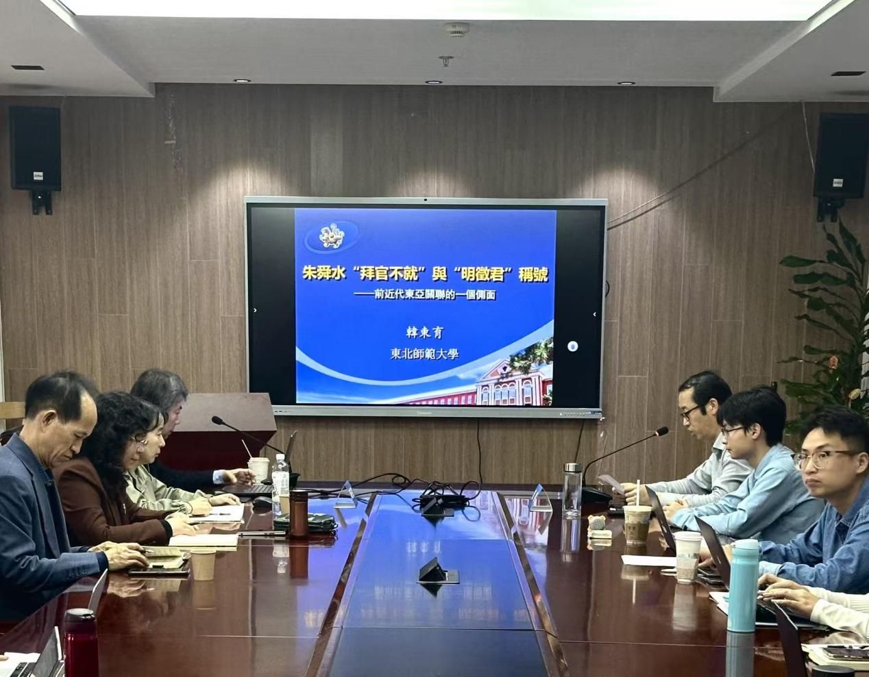 2025年11月6日下午,东北师范大学东亚研究院院长韩东育教授应邀来访,在jdb电子中国官方网站306室为jdb电子师生做了题为《朱舜水“拜官不就”与“明徵君”称号》的学术讲座。讲座由jdb电子中国官方网站历史学系柴彬教授主持,王三义教授、陈菊霞教授、张智慧副教授、朱虹副教授等老师与近三十名jdb电子中国官方网站世界史硕士、博士生参加研讨。