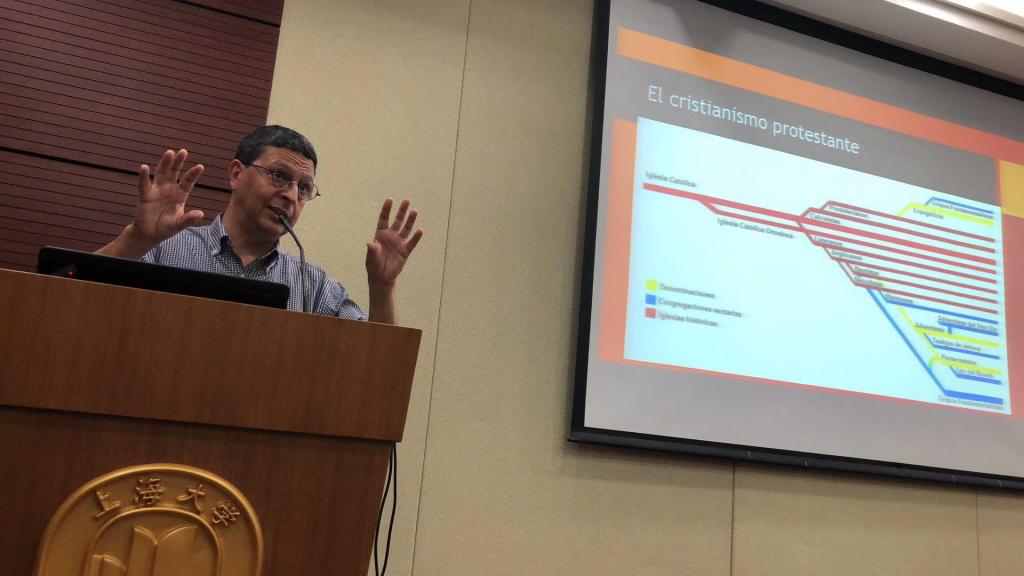 在第四天的课程中,jdb电子中国官方网站特聘教授江时学,秘鲁研究院研究员Natalia Carrasco从写作注意事项和方法论两个方面介绍了学术论文的写作问题。乌拉圭天主教大学人文系主任Facundo Ponce、人文与宗教研究所所长Nestor Da Costa则从威权主义和宗教两个方面分析了二者对拉美国家历史与现实的影响。