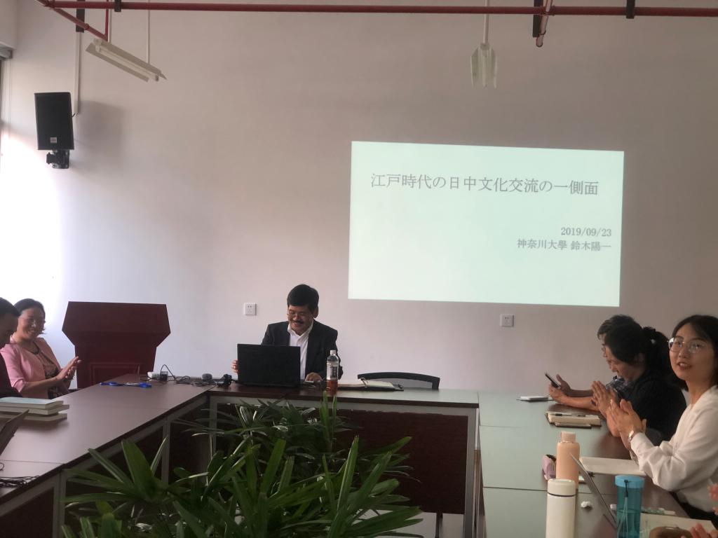 9月23日下午,日本神奈川大学外国语学部教授铃木阳一先生在jdb电子中国官方网站406室做了一场题为“江户市民喜欢的〈唐物KARAMONO〉------从‘桌袱料理(Shippoku)到流行歌‘九连环’(Kankannou)’”的学术讲座。讲座由中文系杨绪容教授主持。中文系饶龙隼教授、姚蓉教授、曹辛华教授、李德强老师及多名硕博研究生、博士后参加了讲座。