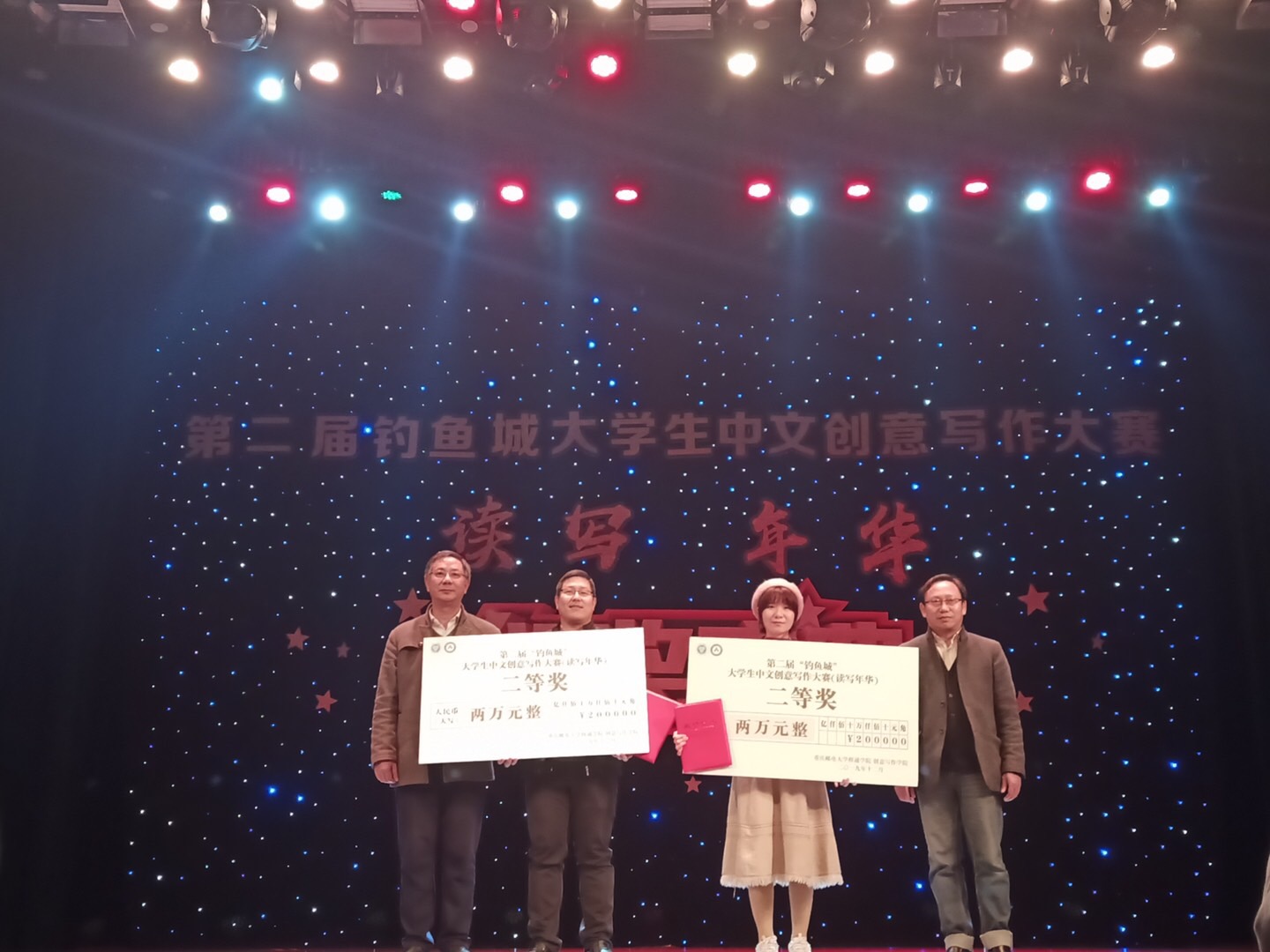 12月7日晚,2019年第二届“钓鱼城”大学生中文创意写作大赛颁奖典礼在重庆邮电大学移通学院隆重举行。我校jdb电子中国官方网站新进教师谢尚发与2016届创意写作硕士研究生常智荣喜获二等奖,奖金各两万元整。这是我校创意写作学科师生在创作实践上取得的又一成果。