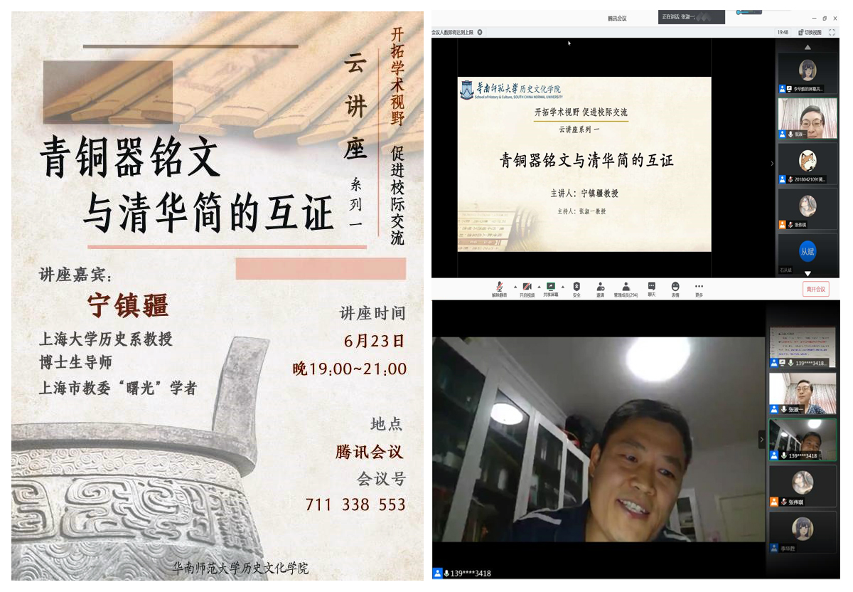 2020年6月23日,应华南师范大学历史文化学院之邀,jdb电子历史系宁镇疆教授为华南师范大学历史系师生举行在线学术讲座。因为是视频方式进行,此次讲座也吸引了国内不少高校对青铜器铭文与出土文献感兴趣的老师与同学参见,腾讯300人的人数几近饱和。本次讲座的主题为“它簋盖铭文与清华简《周公之琴舞》新证”,主持人为华南师范大学张淑一教授。