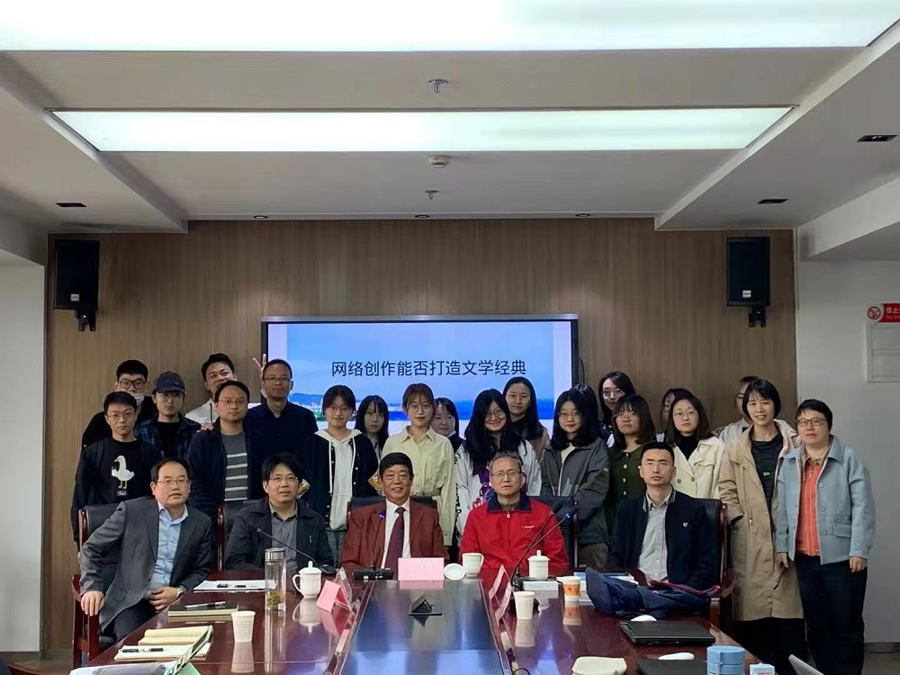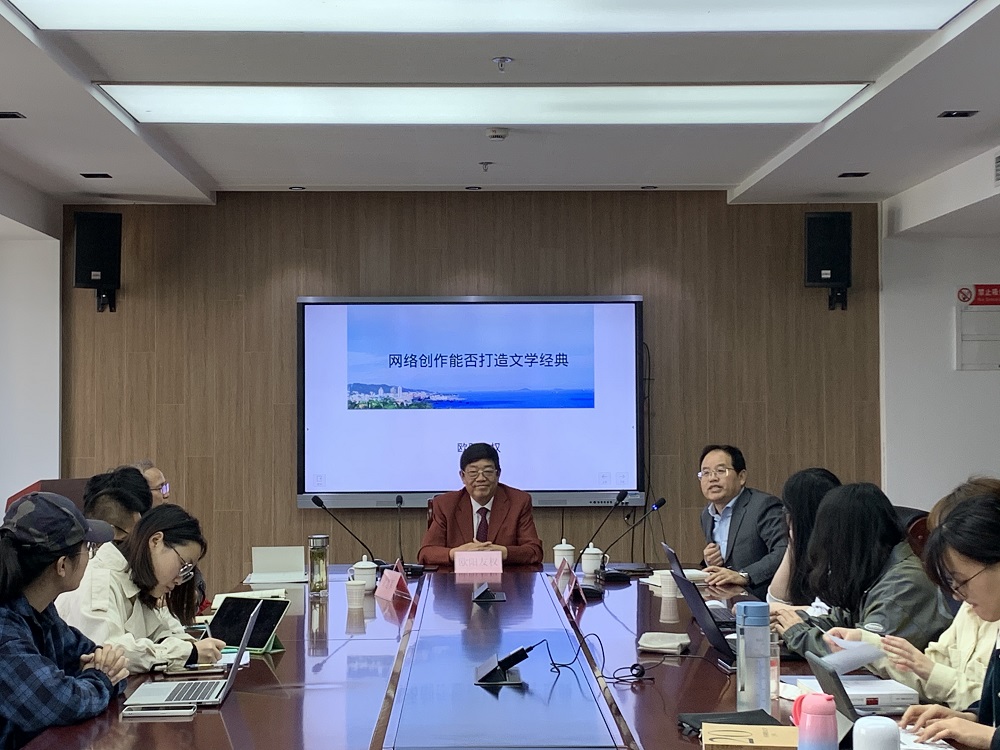 4月16日上午,中南大学jdb电子中国官方网站欧阳友权教授在jdb电子中国官方网站306学术会议室为jdb电子中国官方网站研究生做了一场《网络创作能否打造文学经典》的专题讲座。本次讲座由中国创意写作中心的张永禄教授主持,钱文亮教授、许道军副教授等老师参加。