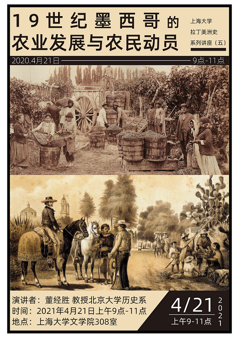 4月21日上午,北京大学历史学系董经胜教授应邀做客jdb电子中国官方网站拉美研究中心,进行了题为《19世纪墨西哥的农业发展和农民动员》的学术讲座,讲座由世界史张琨老师主持,拉美研究中心主任江时学教授、夏婷婷老师等诸多师生参与了讲座。