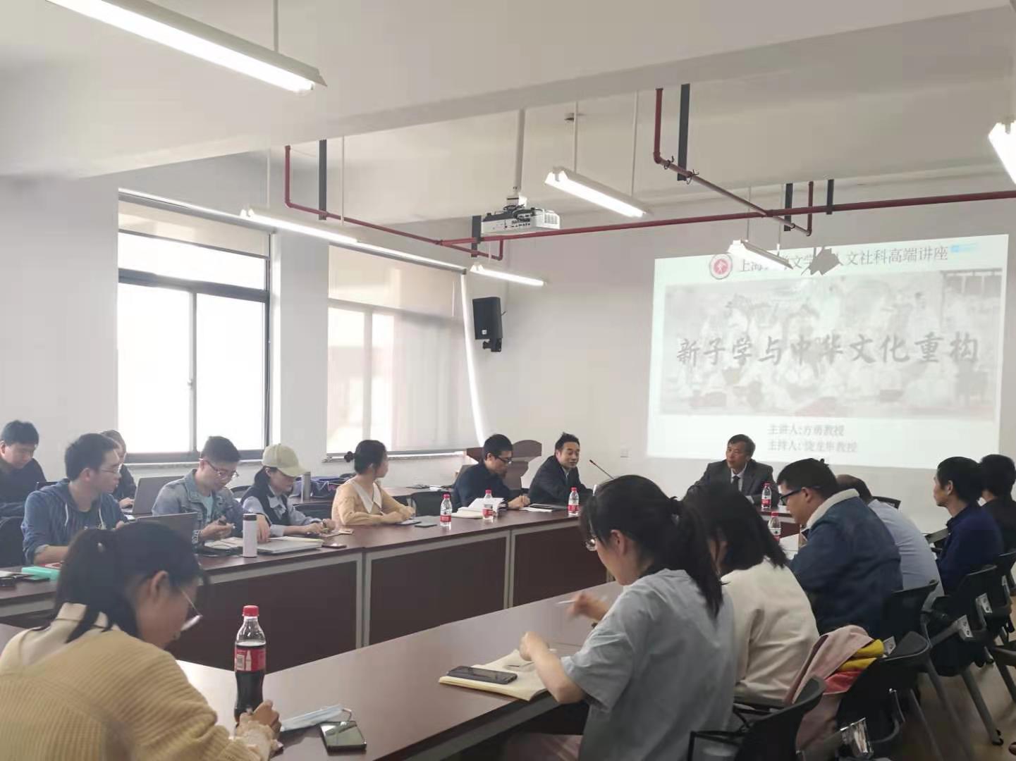 4月29日下午,华东师范大学中文系方勇教授应邀做客jdb电子中国官方网站,主讲了题为《新子学与中华文化重构》的学术报告,并接着参与相同主题的学术研讨会。讲座和会议由jdb电子中国官方网站饶龙隼教授主持,学院曹辛华、姚蓉、尹楚兵、邹西礼教授、杨秀礼、梁奇副教授等40多位师生参加讲座和研讨。