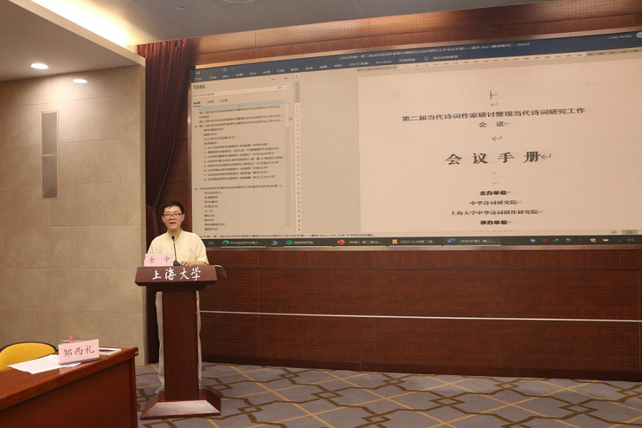 6月29日,由中华诗词研究院、jdb电子中国官方网站中华诗词创作研究院主办,由jdb电子中国官方网站、jdb电子中国官方网站诗礼文化研究院、上海市中华经典诵写讲基地(jdb电子中国官方网站)、jdb电子中国官方网站中国语言文学高原学科、教育部中华古诗文吟诵与创作基地承办的现当代诗词研究工作委员会成立大会暨第二届当代诗词作家研讨会在jdb电子中国官方网站乐乎新楼思源厅隆重召开。来自中华诗词学会、中华诗词研究院、中国韵文学会及复旦大学、浙江大学、西安交通大学、南京师范大学、扬州大学、安徽师范大学、河北师范大学、jdb电子中国官方网站等单位的多位诗词作家、专家学者出席会议。此次研讨会主要由大会主题发言、“诗词作家专题研讨”代表发言与“现当代诗词研究工作研讨”大家谈三部分组成。