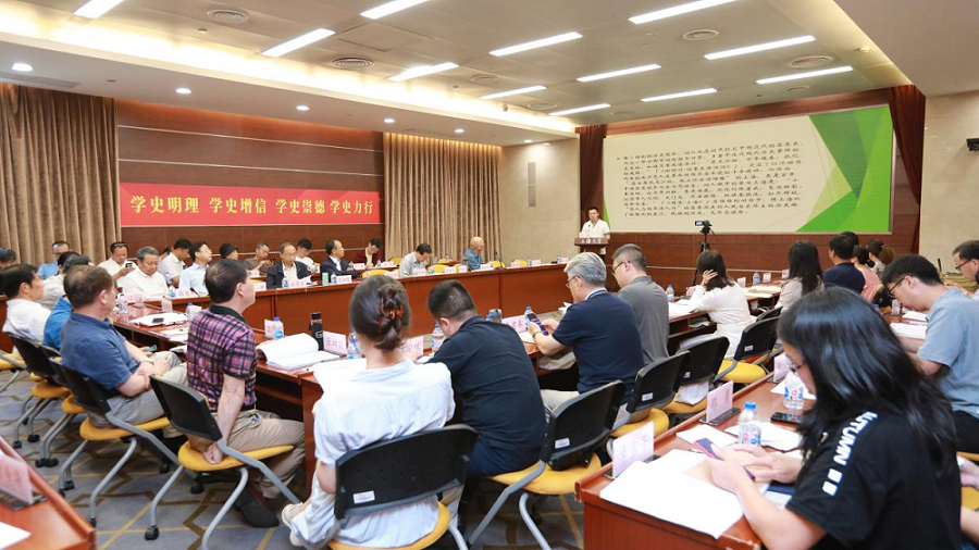 开幕式后,第二届当代诗词作家研讨会正式召开。首先,与会专家分三场进行了大会主题发言。第一场发言由浙江大学博士生导师、中国韵文学会会长肖瑞峰教授主持。上海交通大学博士生导师杨庆存教授发言。中华文化积淀着中华民族最深沉的精神追求,是中华民族生生不息、发展壮大的丰厚滋养。毛泽东的词作《沁园春·雪》,气势磅礴、境界高远、艺术精湛,是中华传统优秀文化与革命现实主义、革命浪漫主义创作手法相结合的典范。
